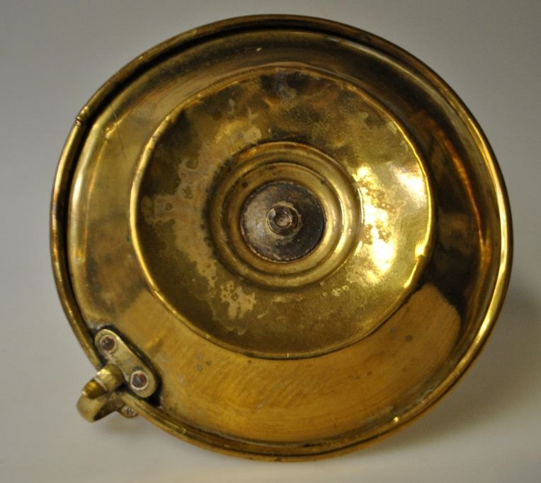 Danish chamber candlestick in brass, 19th century. With handle. Drip bowl dia: 17 cm. H.: 11 cm.
