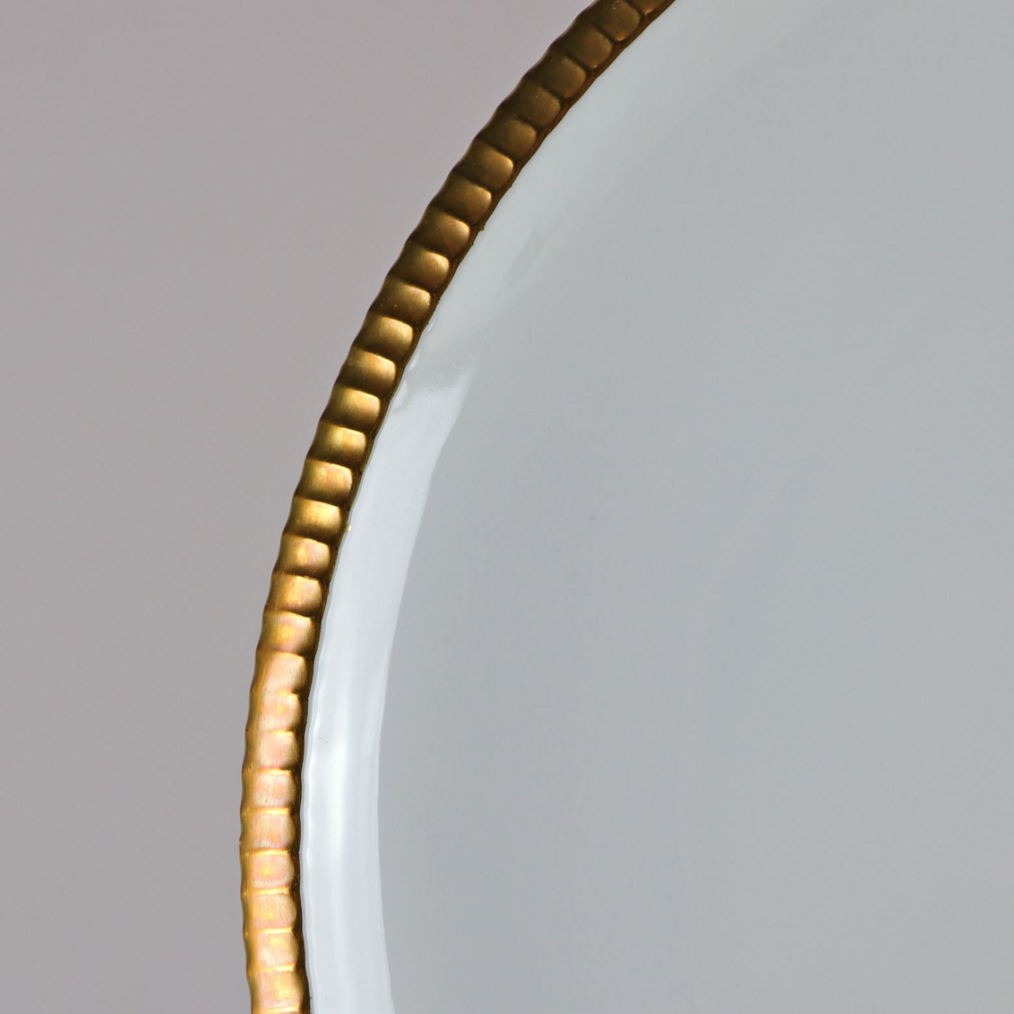 Tallerken i glat hvidt porcelæn med gylden kant