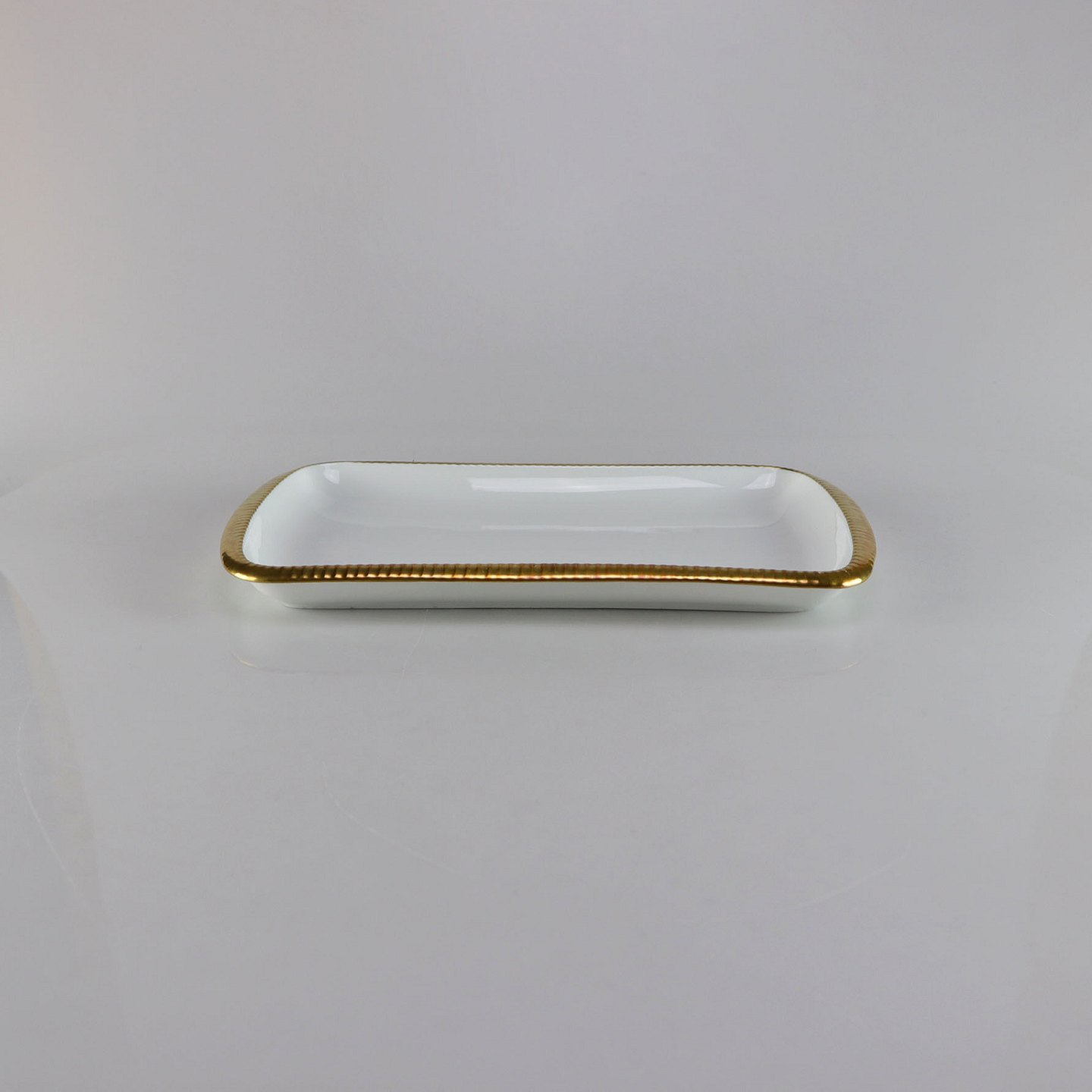 Serveringsfad i glat hvidt porcelæn med gylden kant