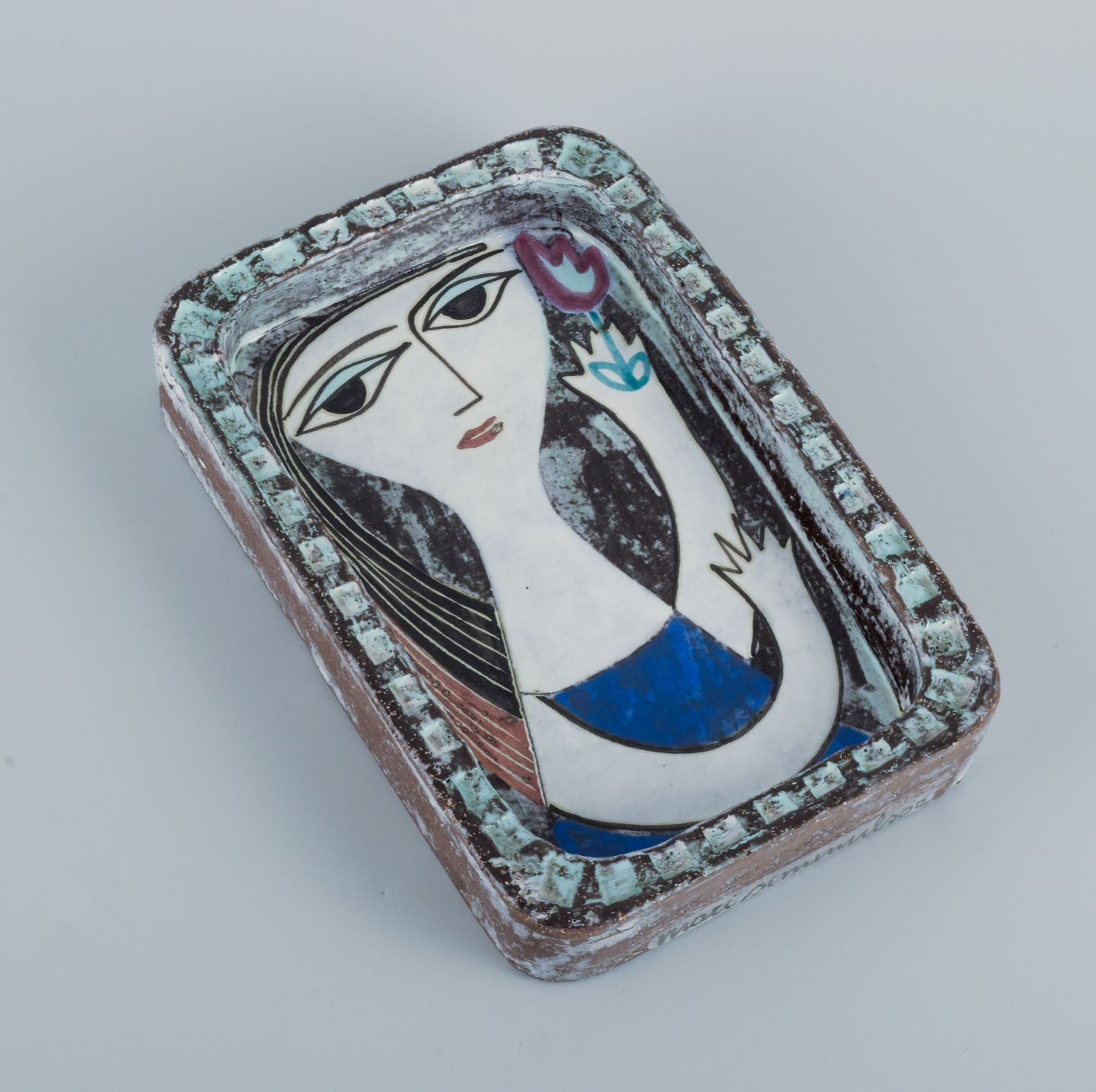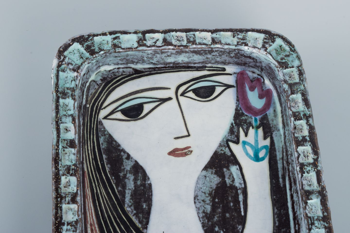 Mari Simmulson for Upsala-Ekeby. Fad i glaseret stentøj med kvindeportræt.