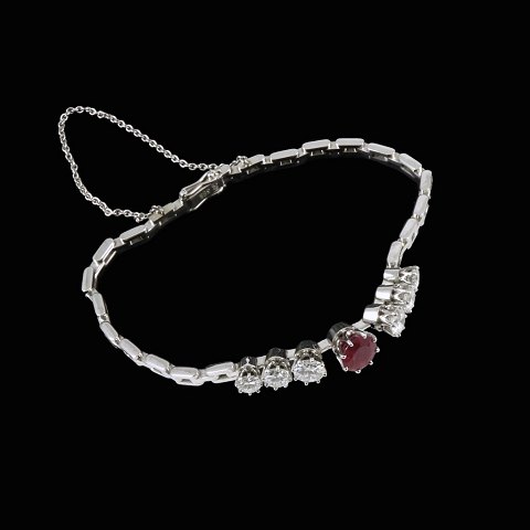 A. Dragsted. Armbånd i 14k hvidguld med Rubin og brillanter.