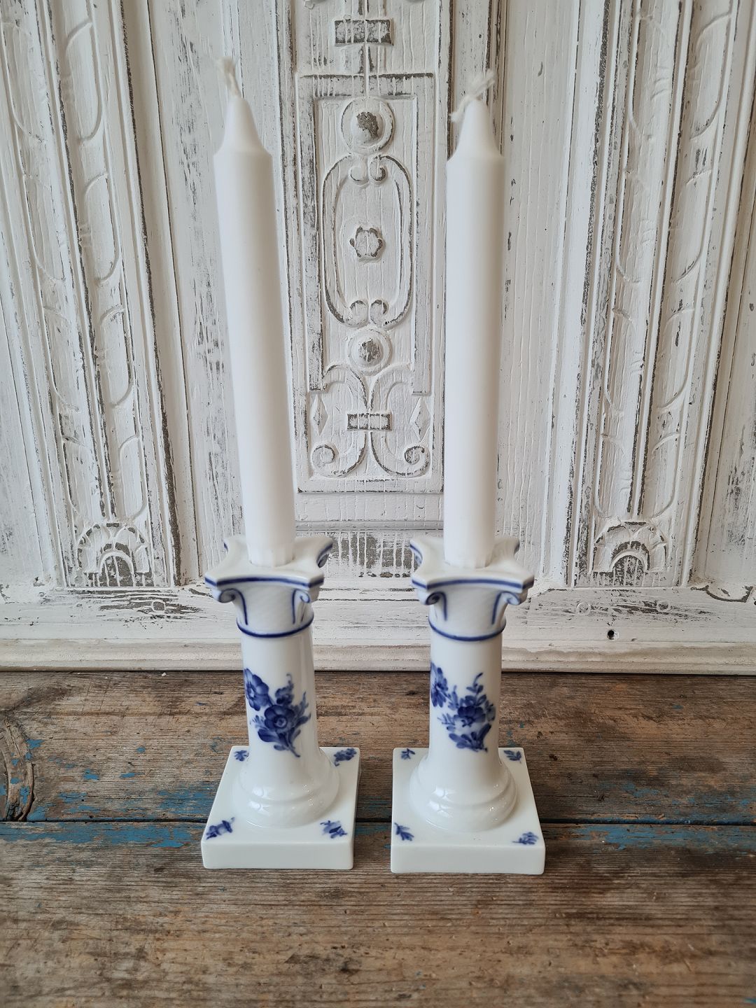 Royal Copenhagen Blå Blomst flettet par søjle lysestager