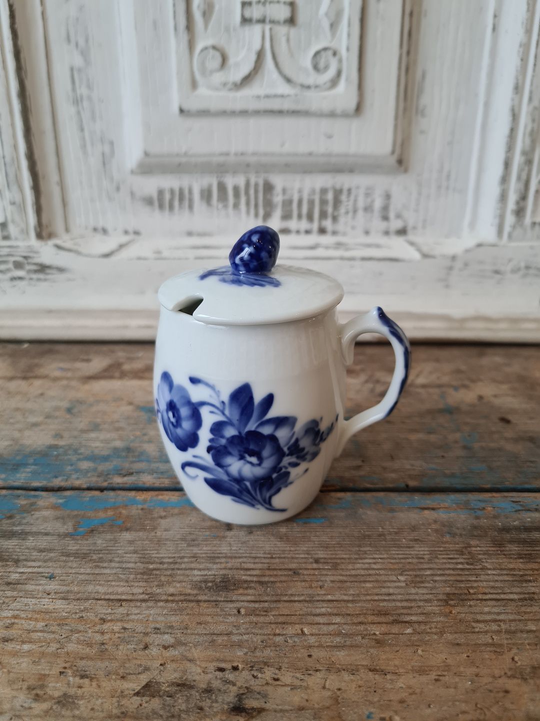 Royal Copenhagen Blå Blomst flettet sennepskande med låg