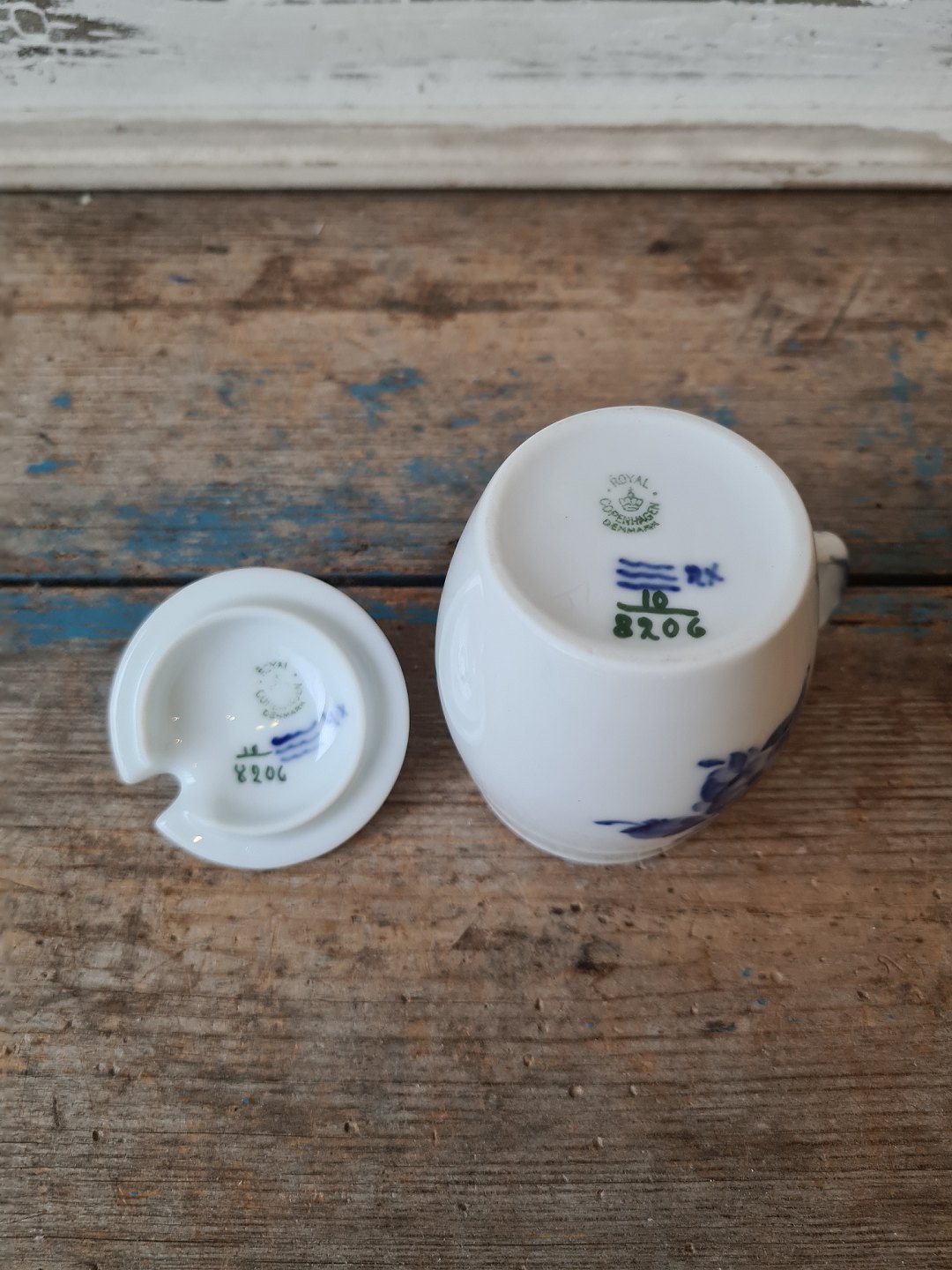Royal Copenhagen Blå Blomst flettet sennepskande med låg No. 8206,