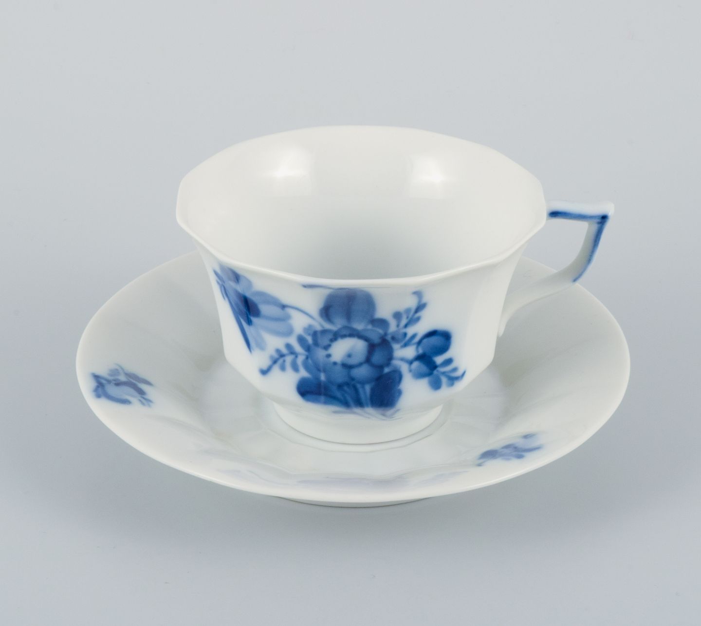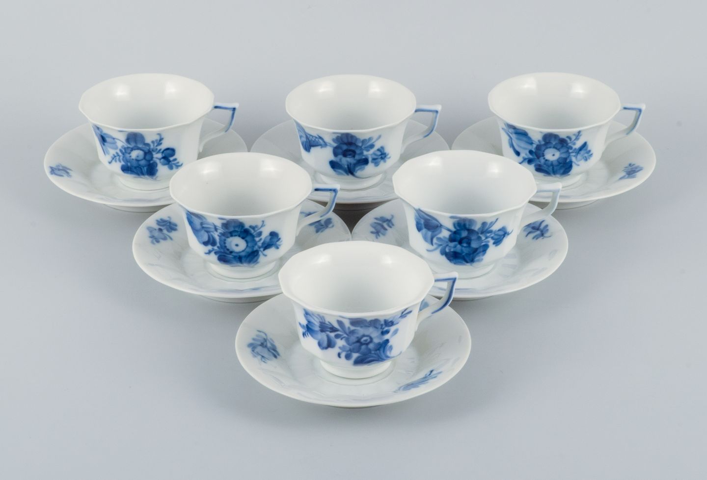 Royal Copenhagen, blue flower angular, six coffee cups with six saucers.