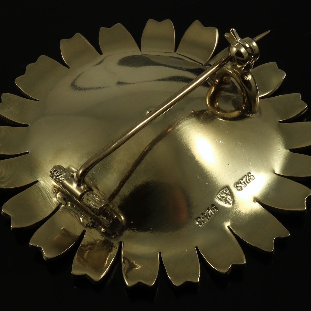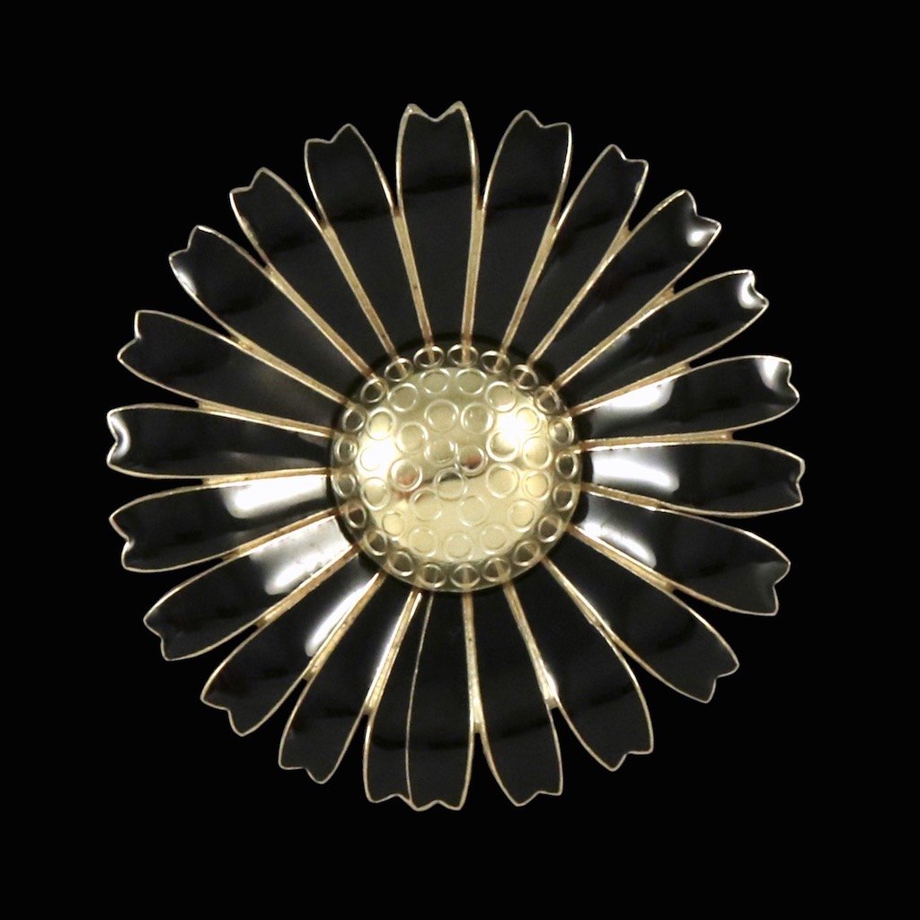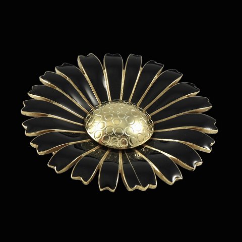 A. Michelsen. Marguerit / Daisy Broche/vedhæng i forgyldt Sterling Sølv med sort emalje - 50mm