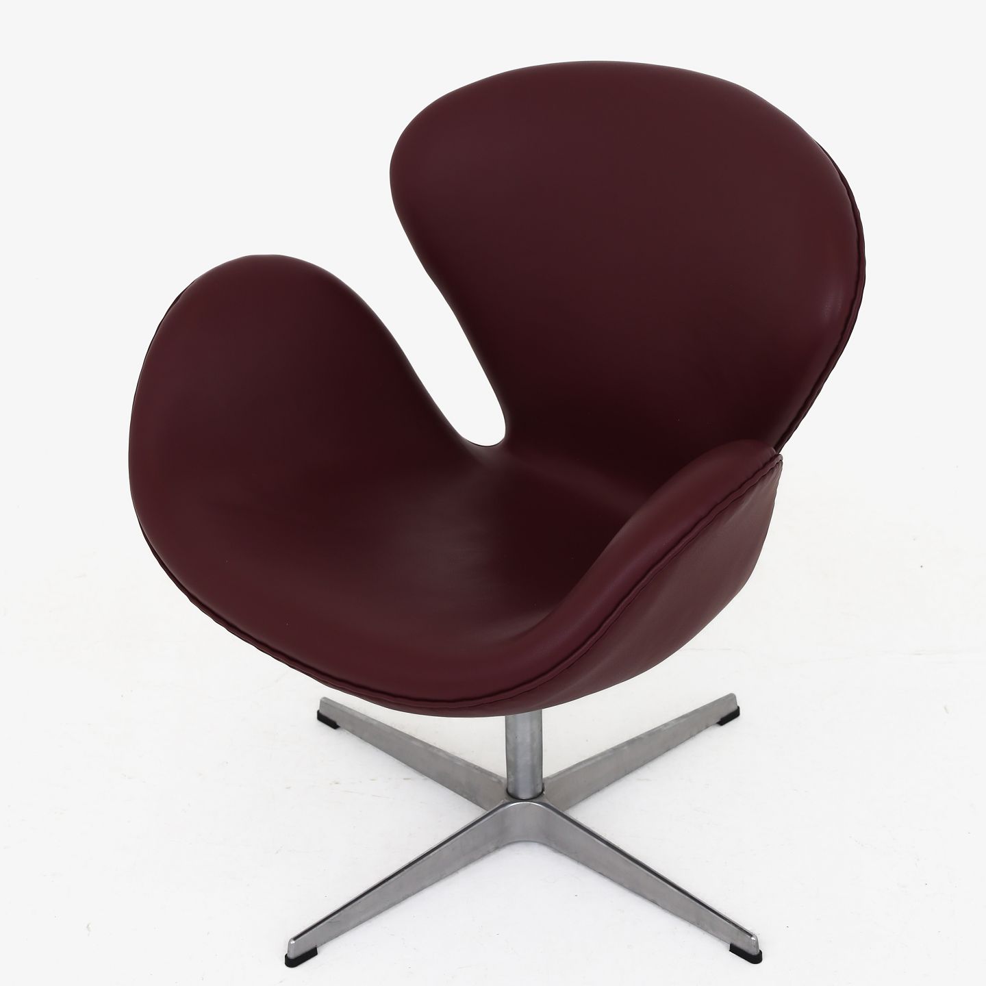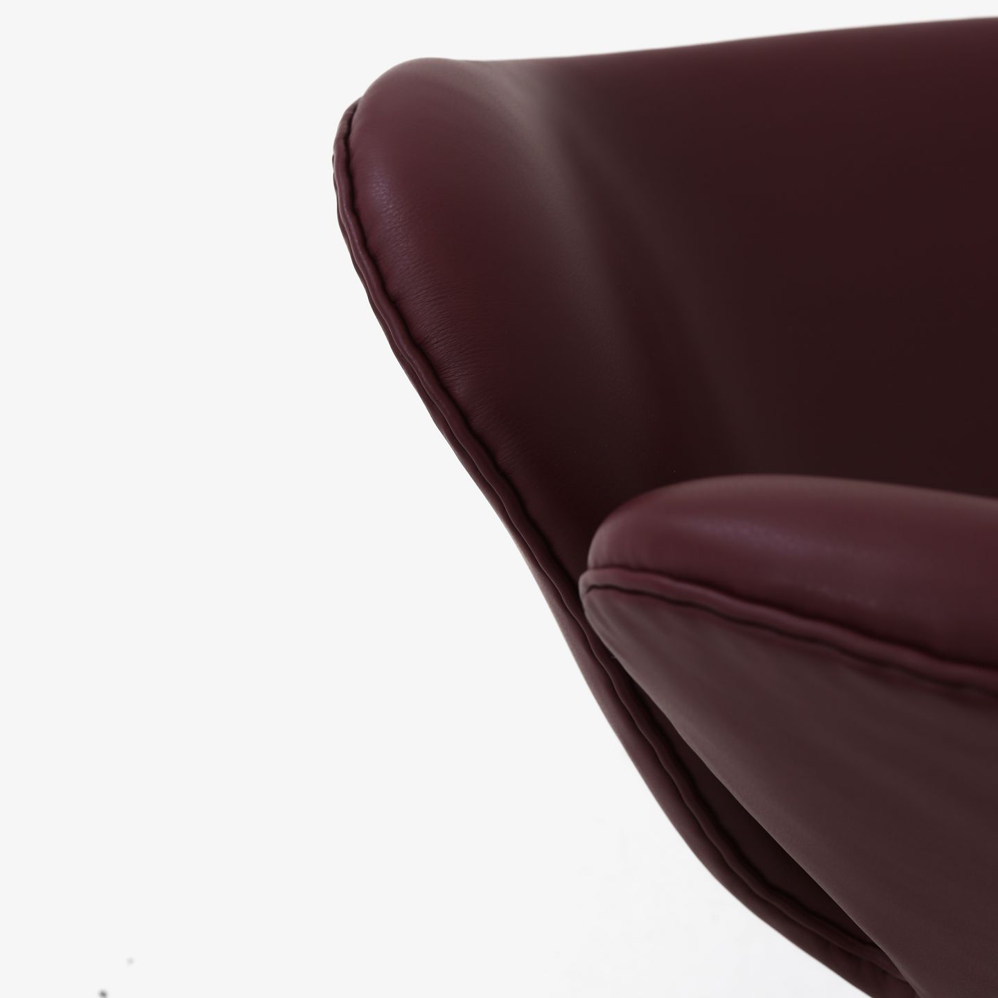 AJ 3320 - Nybetrukket 'Svanen'-lænestol i 'Prestige' semi-anilin-læder (farve: Wine Red) på stel af stål. KLASSIK tilbyder stolen i læder efter eget valg. Kontakt os venligst for mere information.