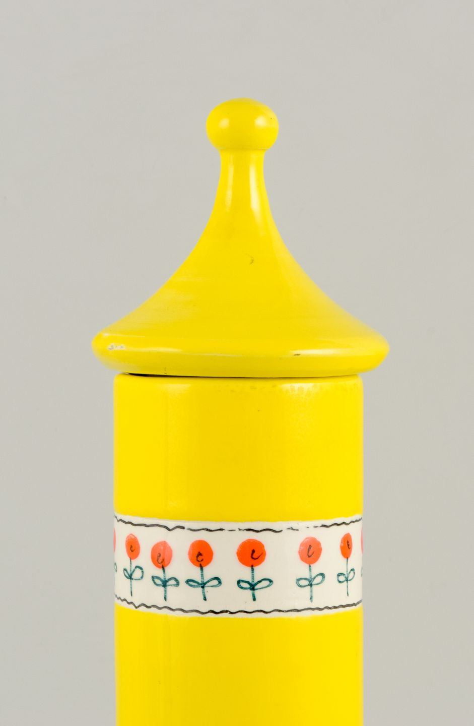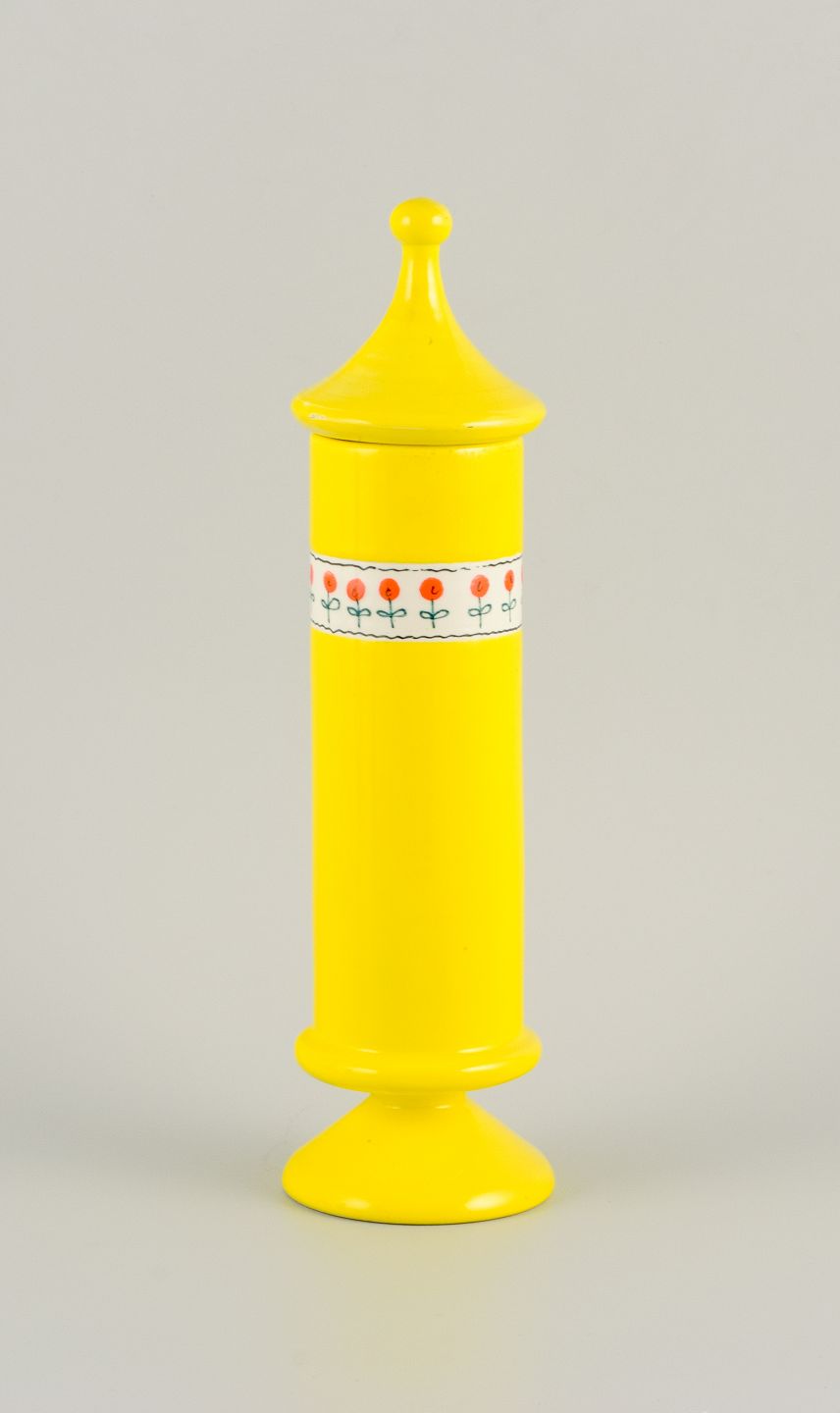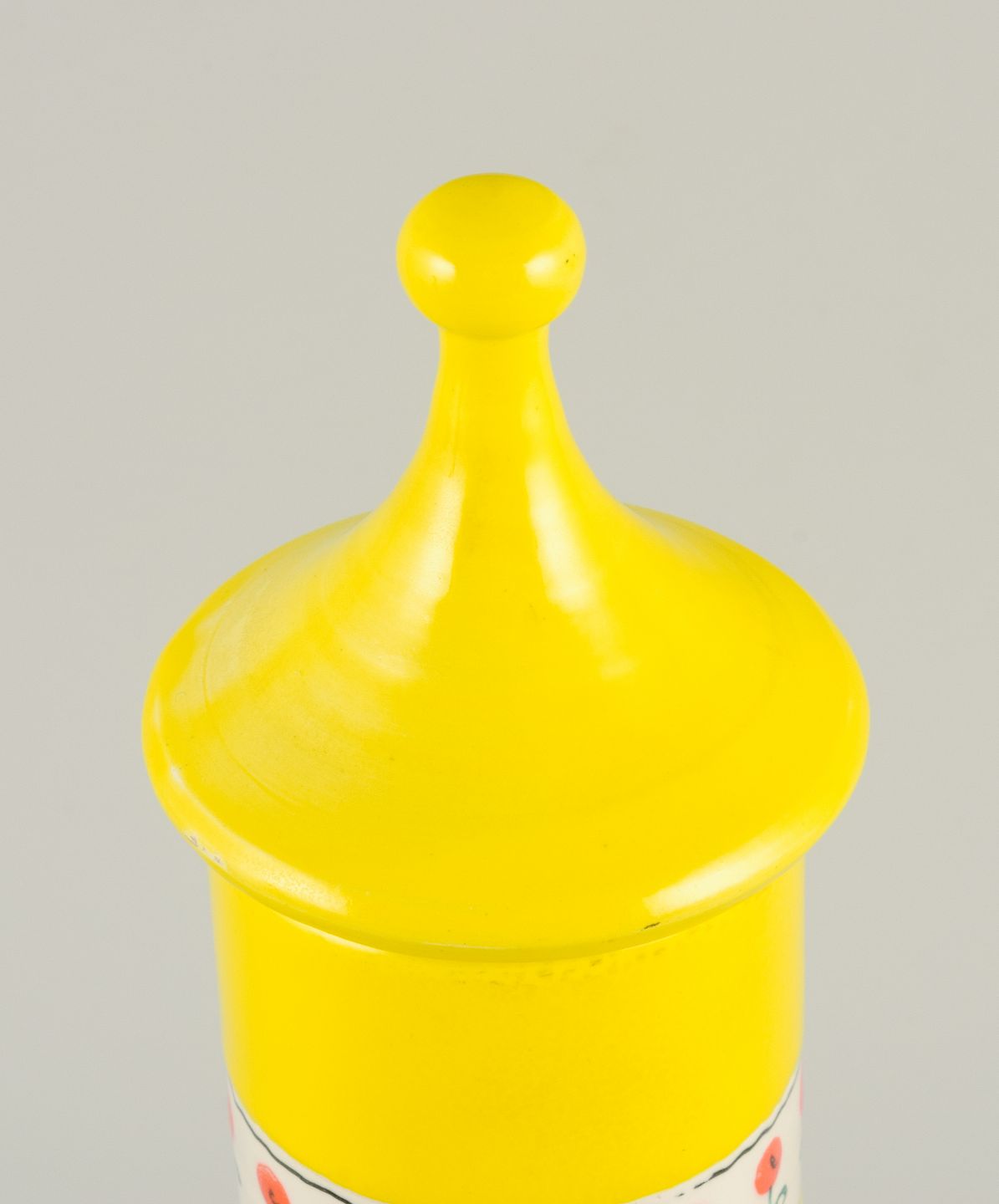 Alvino Bagni, Italien, høj unika vase i gul hånddekoreret keramik.