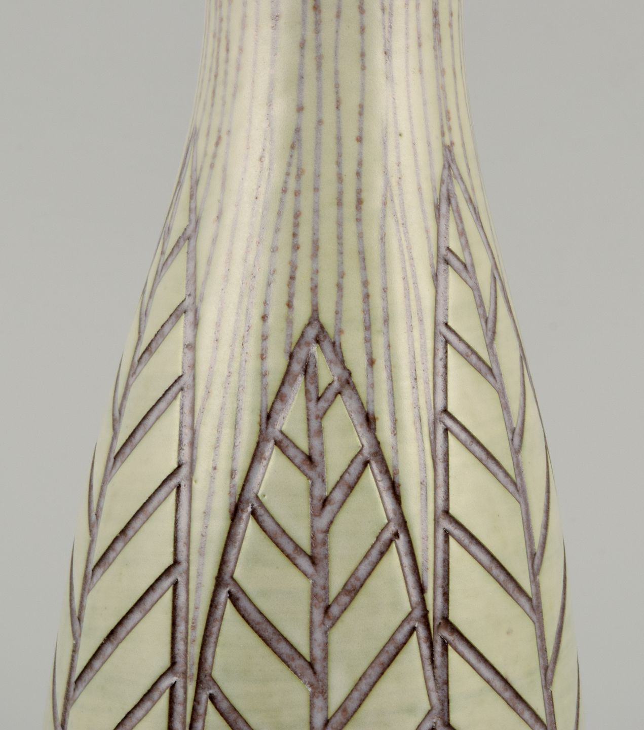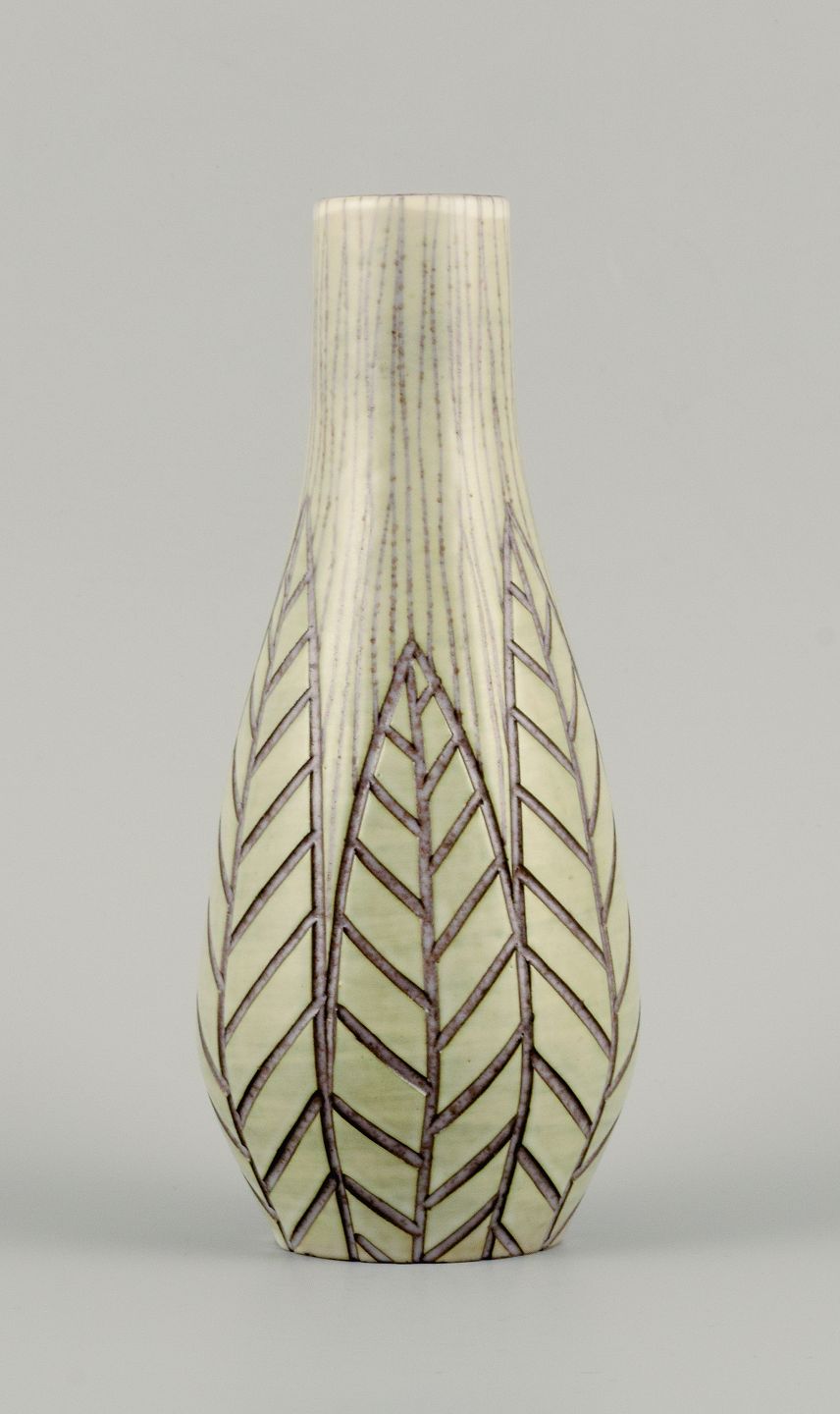 Mari Simmulson for Upsala Ekeby, ”Rhodos” vase i keramik med blade i relief.