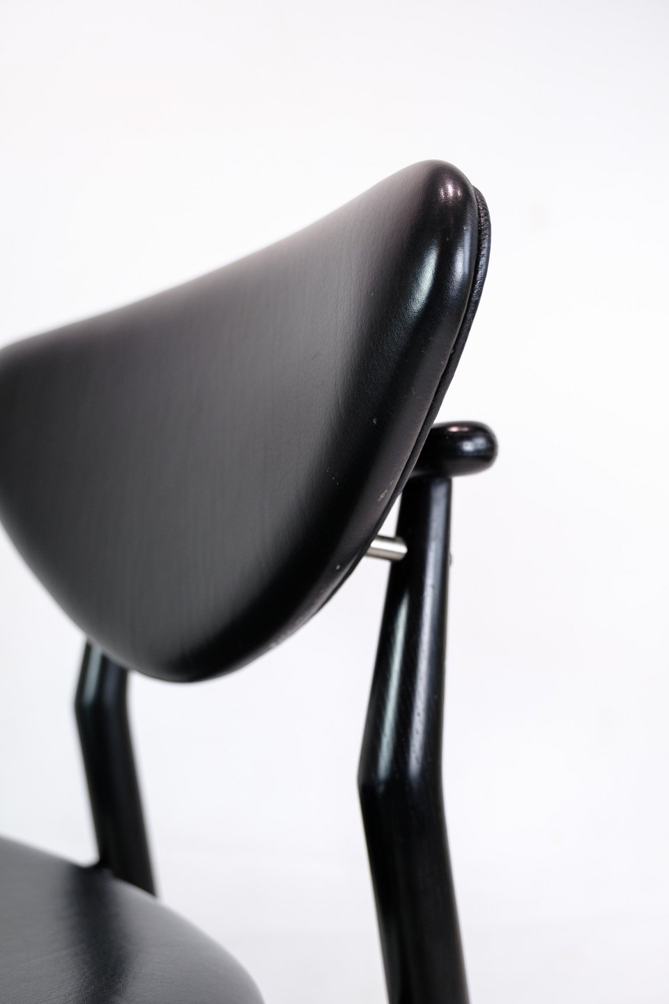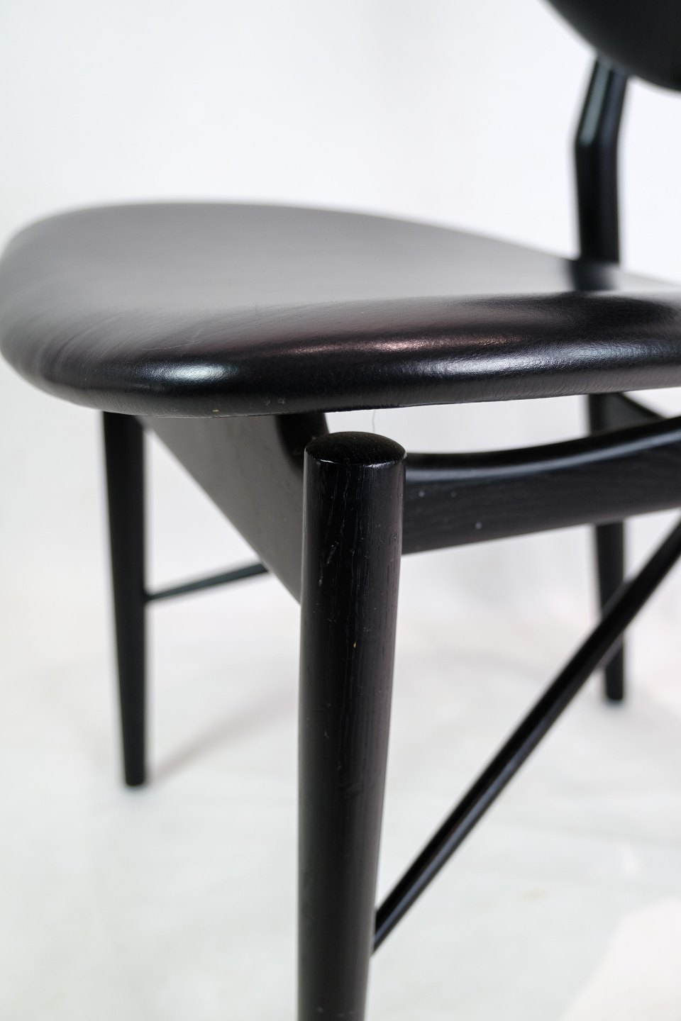 Model 108 Stol, et mesterværk af møbeldesign skabt af Finn Juhl, udført i sortmalet egetræ og betrukket med sort Elegance læder af den højeste kvalitet fra House of Finn Juhl.