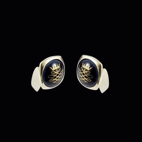 Royal Copenhagen. Manchetknapper i forgyldt sterlingsølv og porcelæn.