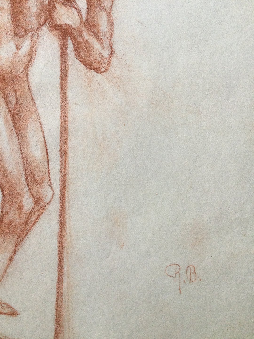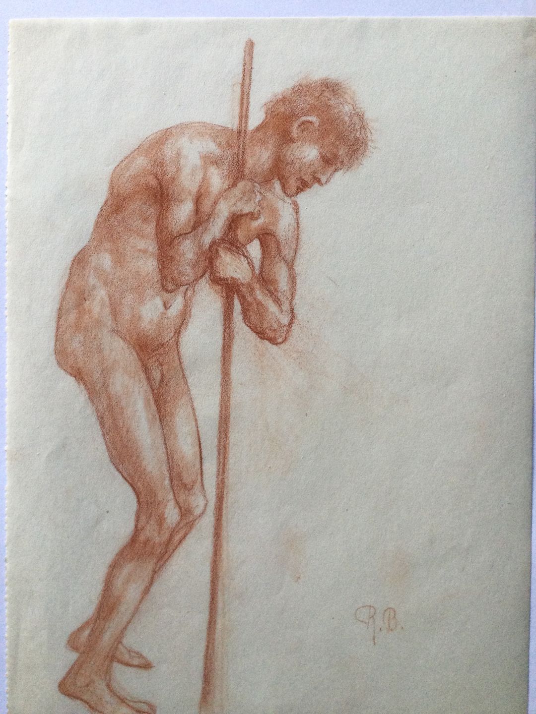 Tegning af Robert Büchtger - Nøgen ung mand med stav.