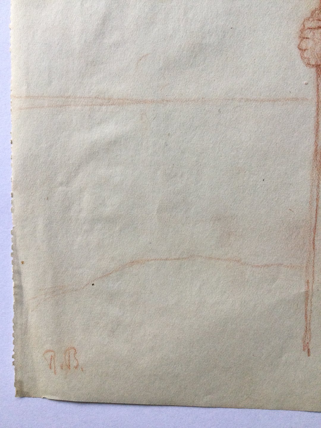 Tegning af Robert Büchtger - Gammel mand med lændeklæde og stav ved træ.