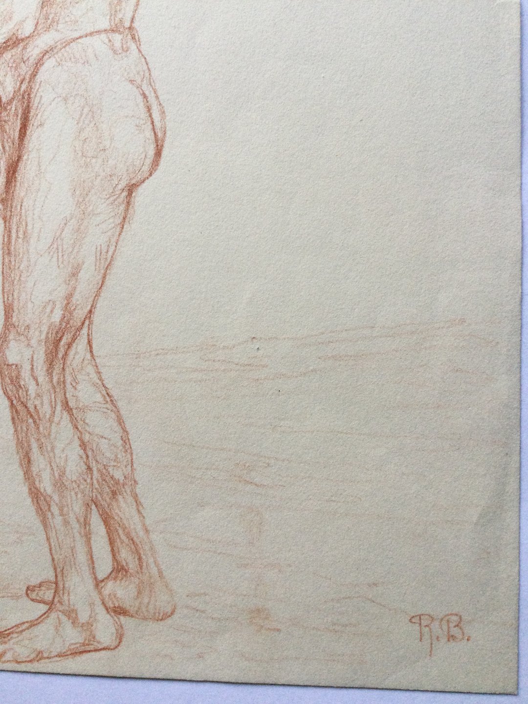 Tegning af Robert Büchtger - Gammel mand med stav og lændeklæde.