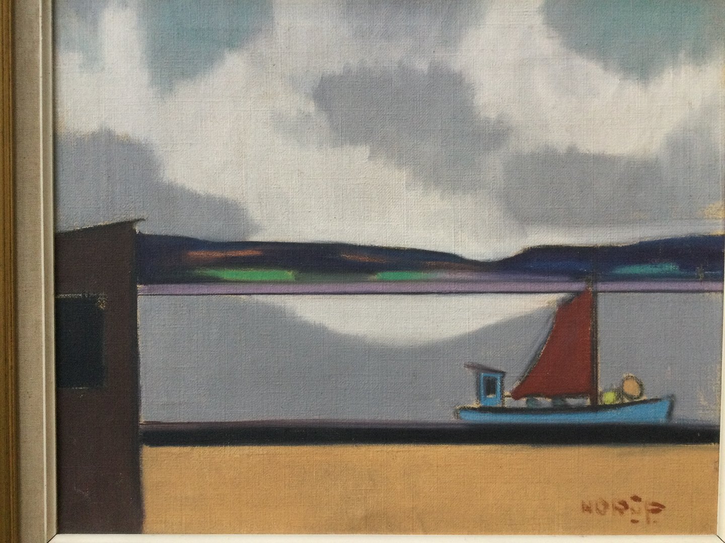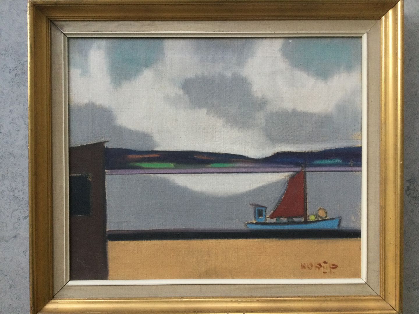 Maleri af Knud Horup - Skib i havn.