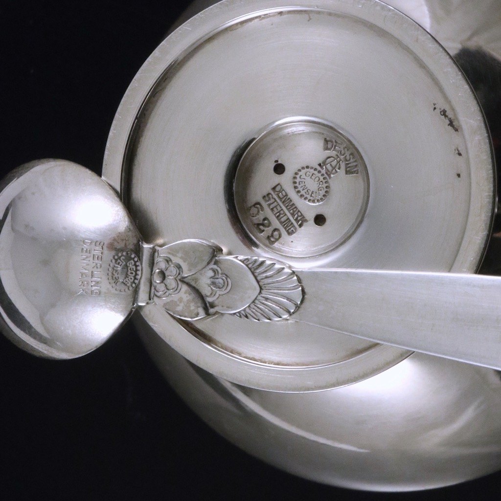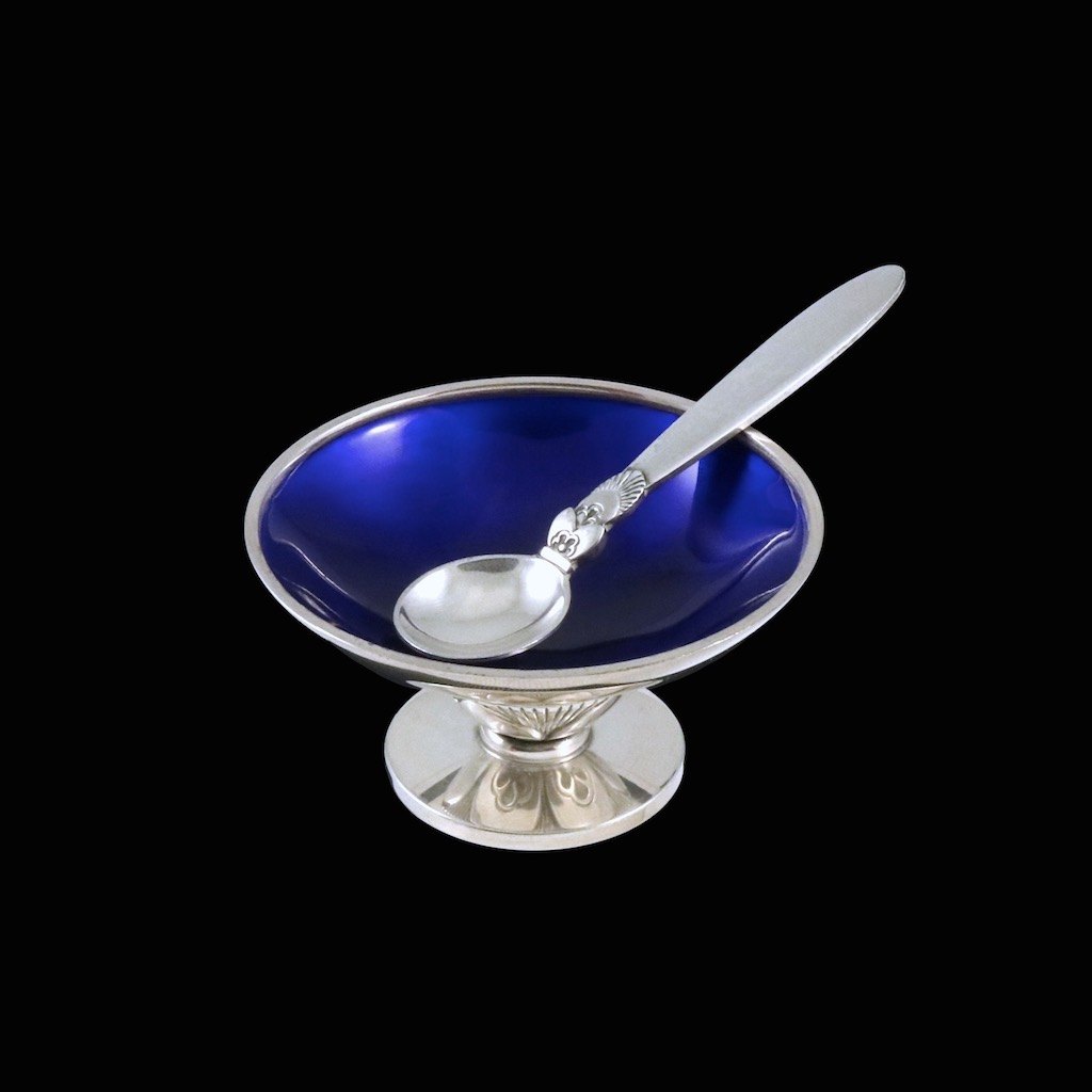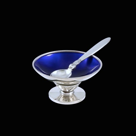 Georg Jensen. Saltkar #629 i sterling sølv med blå emalje med tilhørende ske - Kaktus.