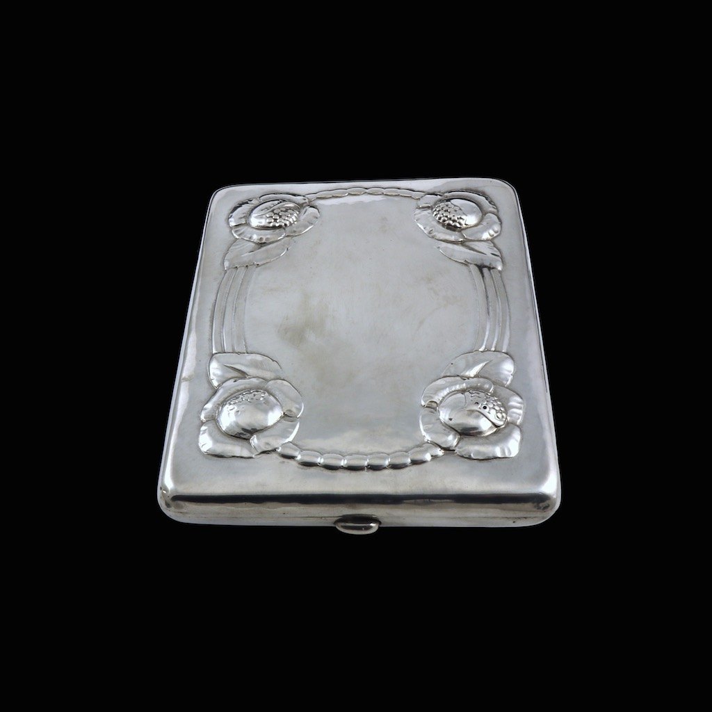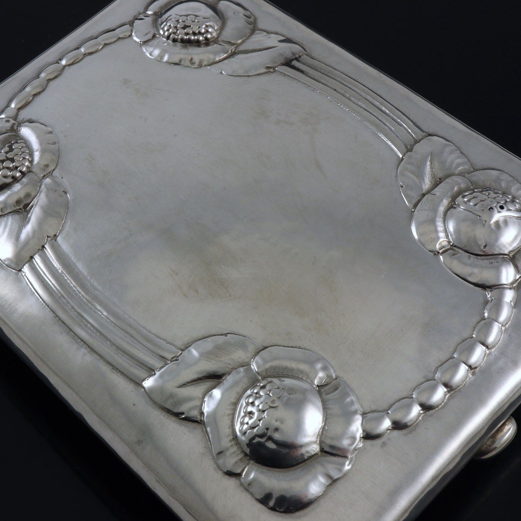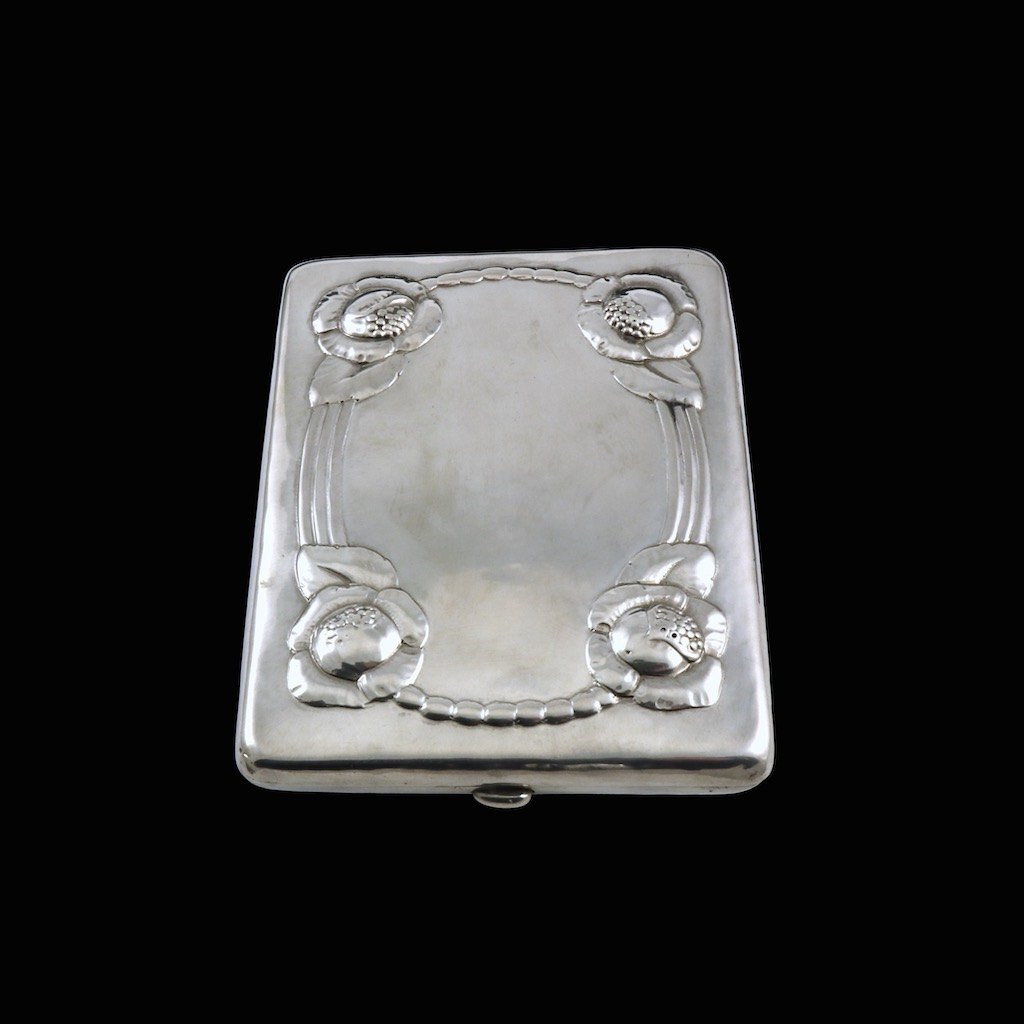 Evald Nielsen 1879 - 1958. Cigaretetui i sølv - Anno 1919.