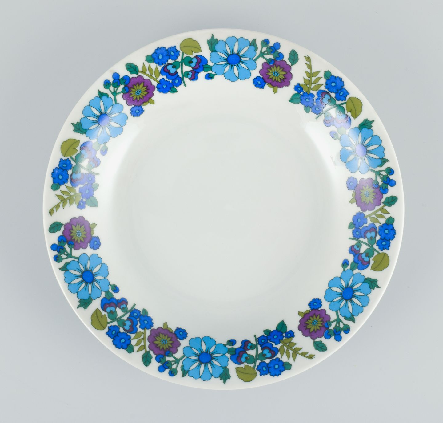 Et sæt på seks dybe tallerkner i porcelæn med blomstermotiv.