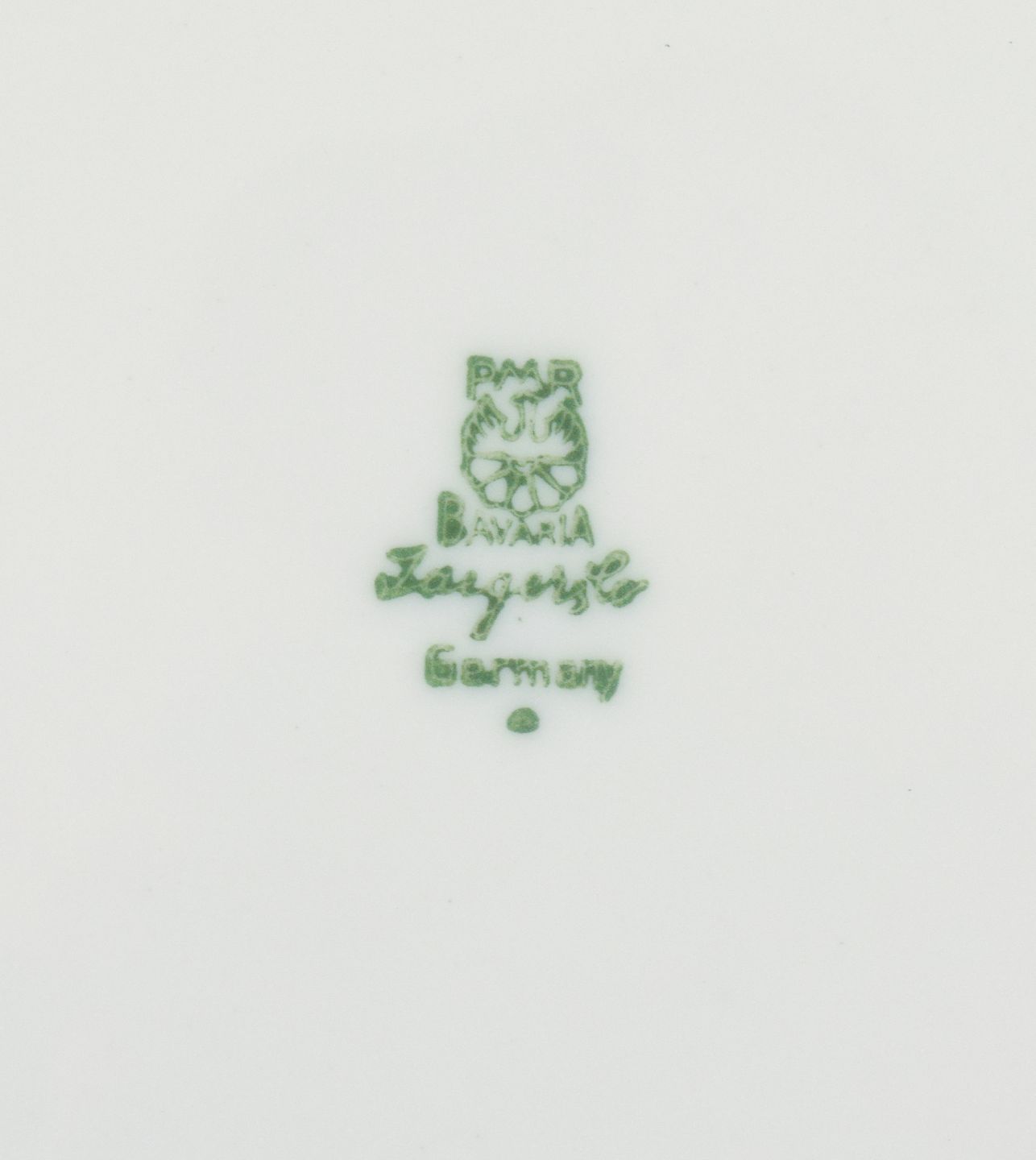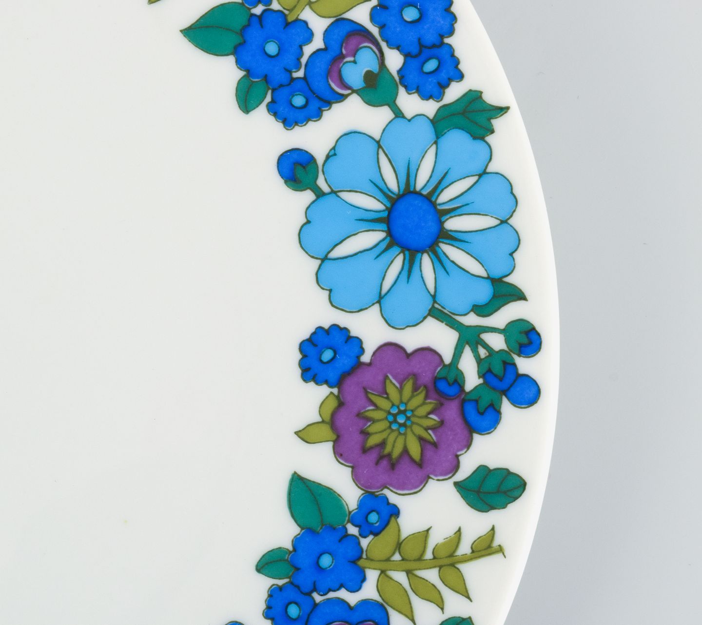 Et sæt på seks tallerkner i porcelæn med blomstermotiv.