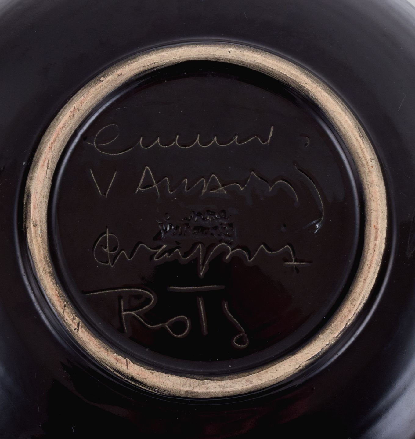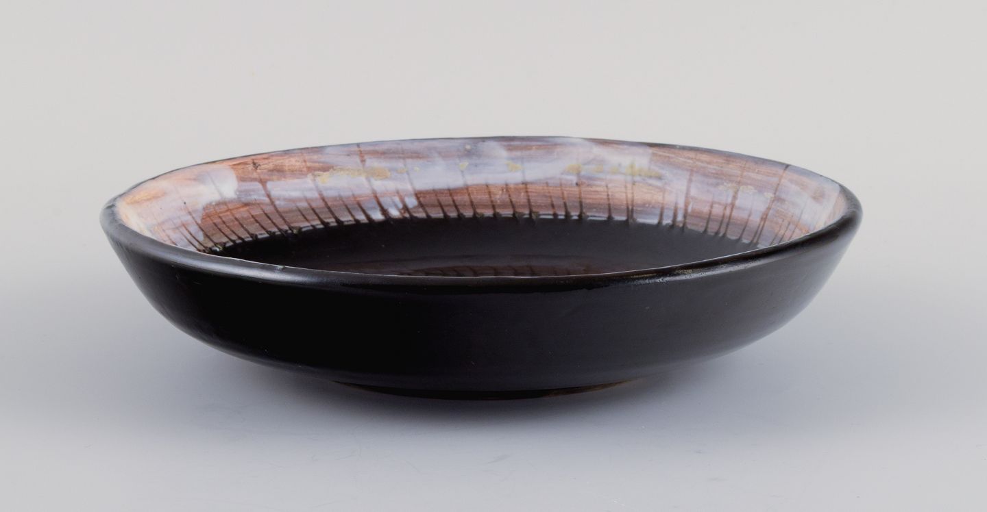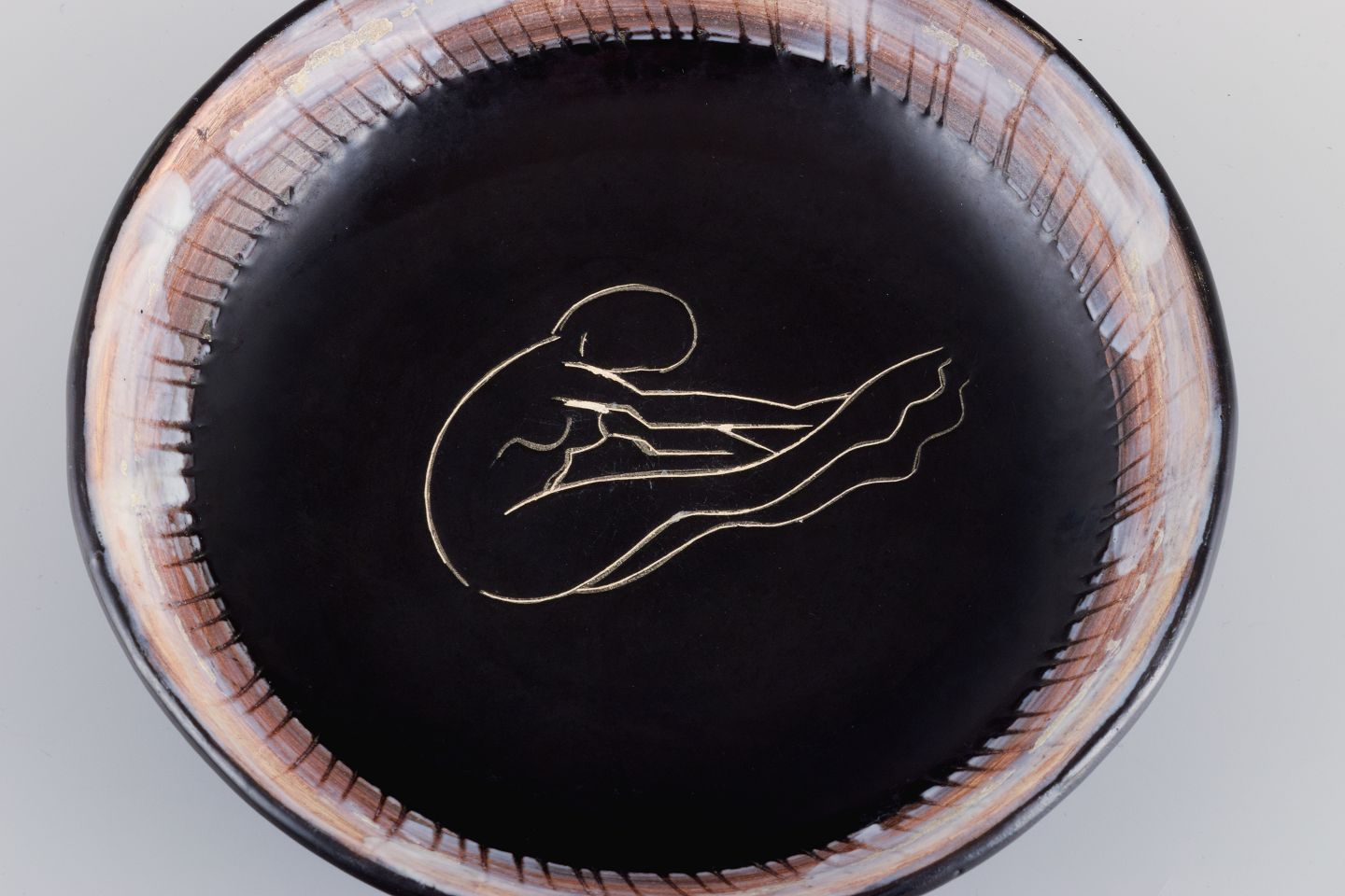 Vallauris, Frankrig, unika keramikskål i sort glasur med kvindemotiv.