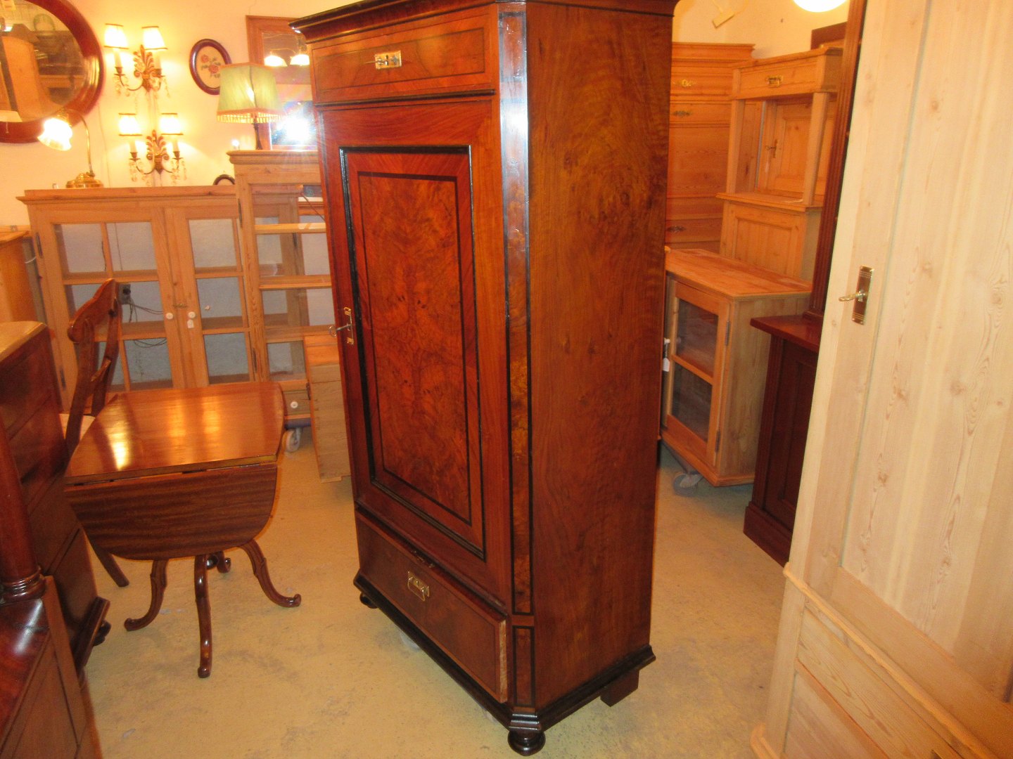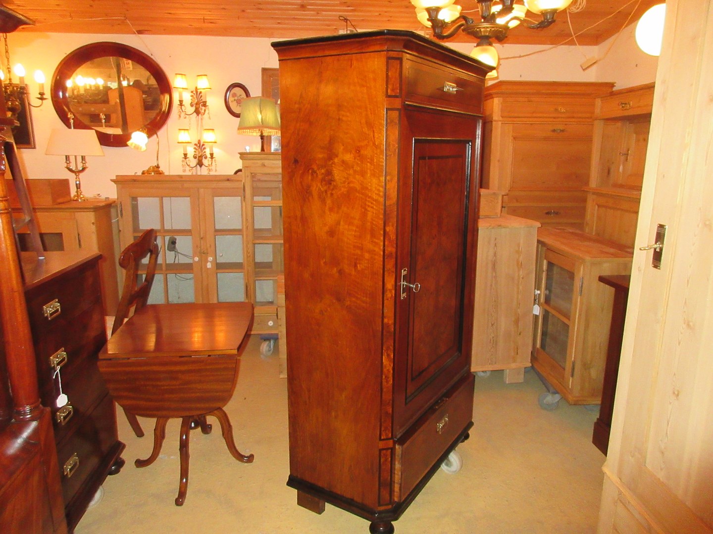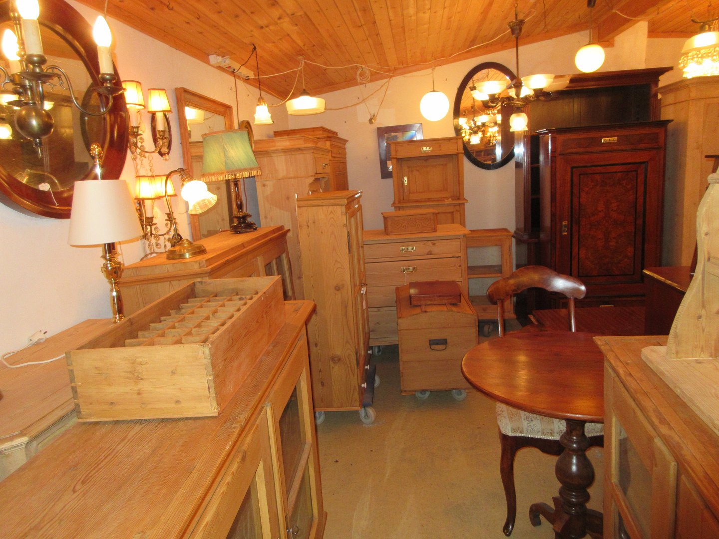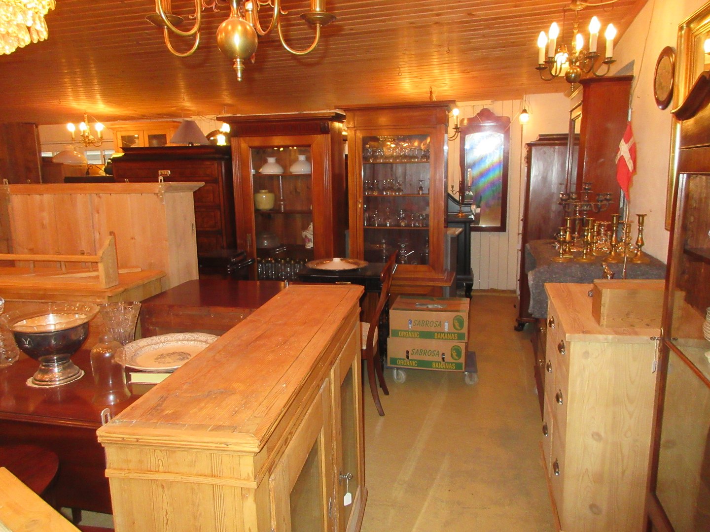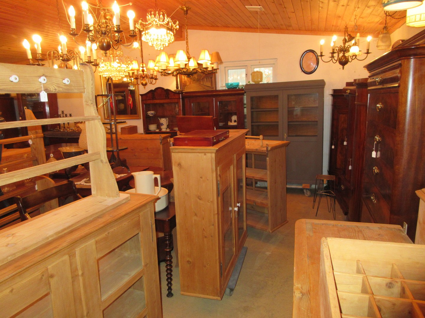 Stor salgsudstilling med restaurerede møbler håndpolerede mahognimøbler, afsyrede fyrretræsmøbler, malede træmøbler, kun originale gamle og antikke møbler.
