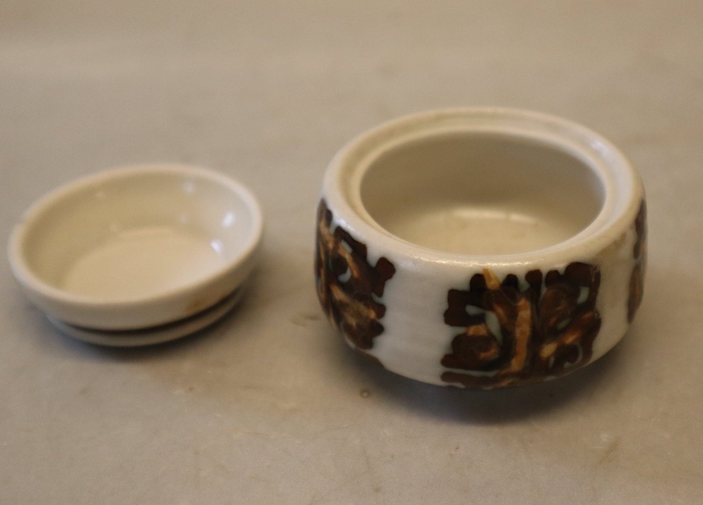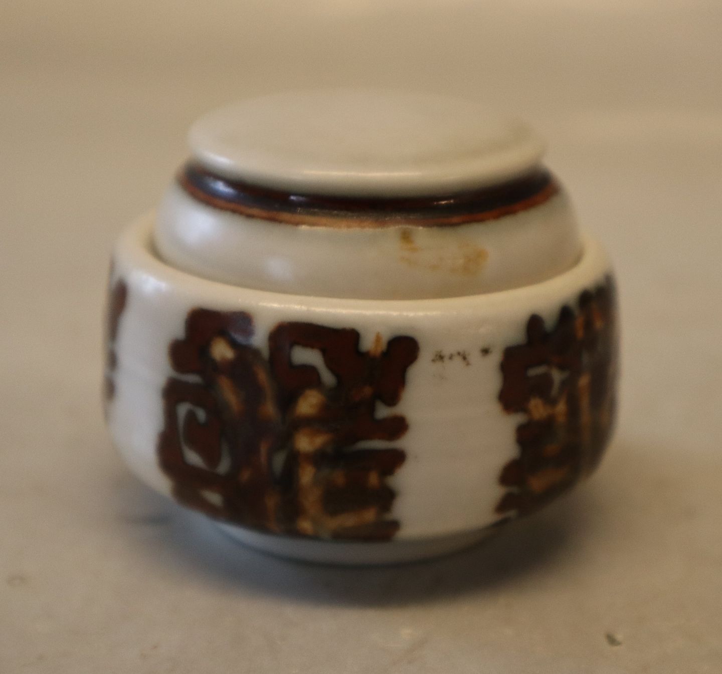 10xx-3324 Kgl. Miniature vase med låg ca 5 x 6.5 cm Nils Thorsson Kongelig Dansk Stentøj