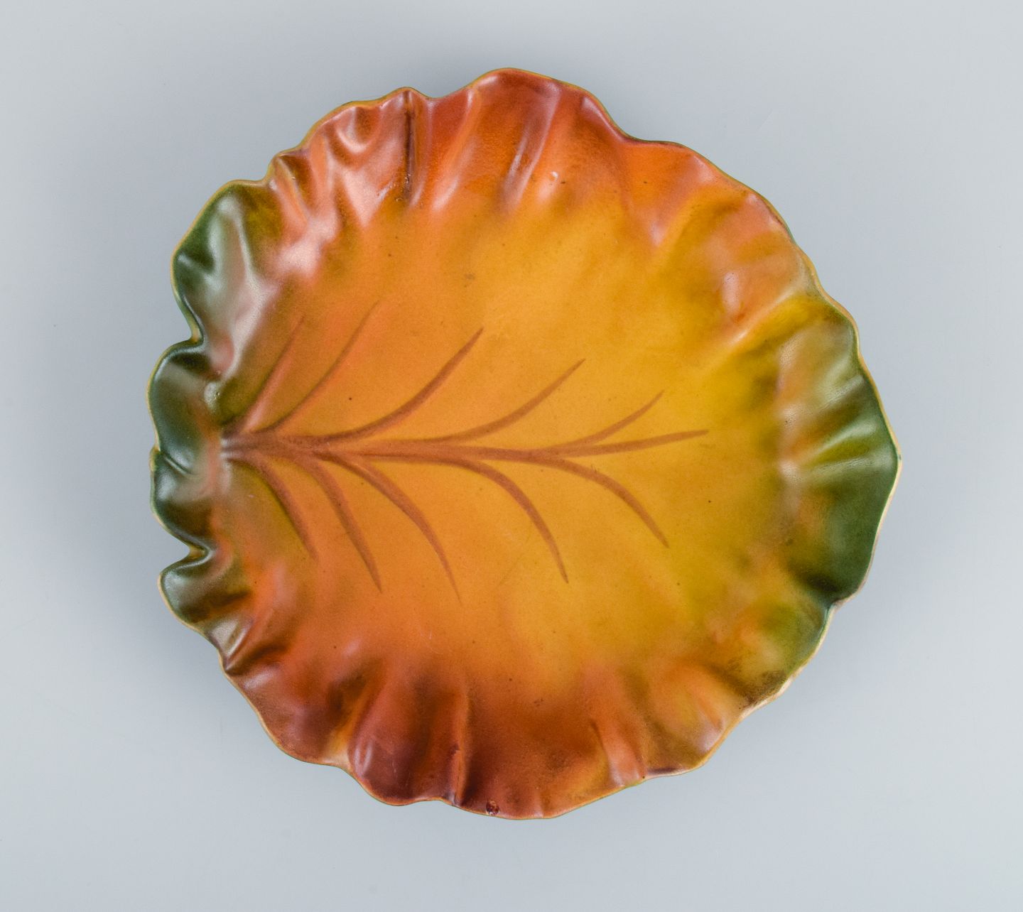 Ipsens Enke, bladformet skål. Glasur i efterårsfarver.