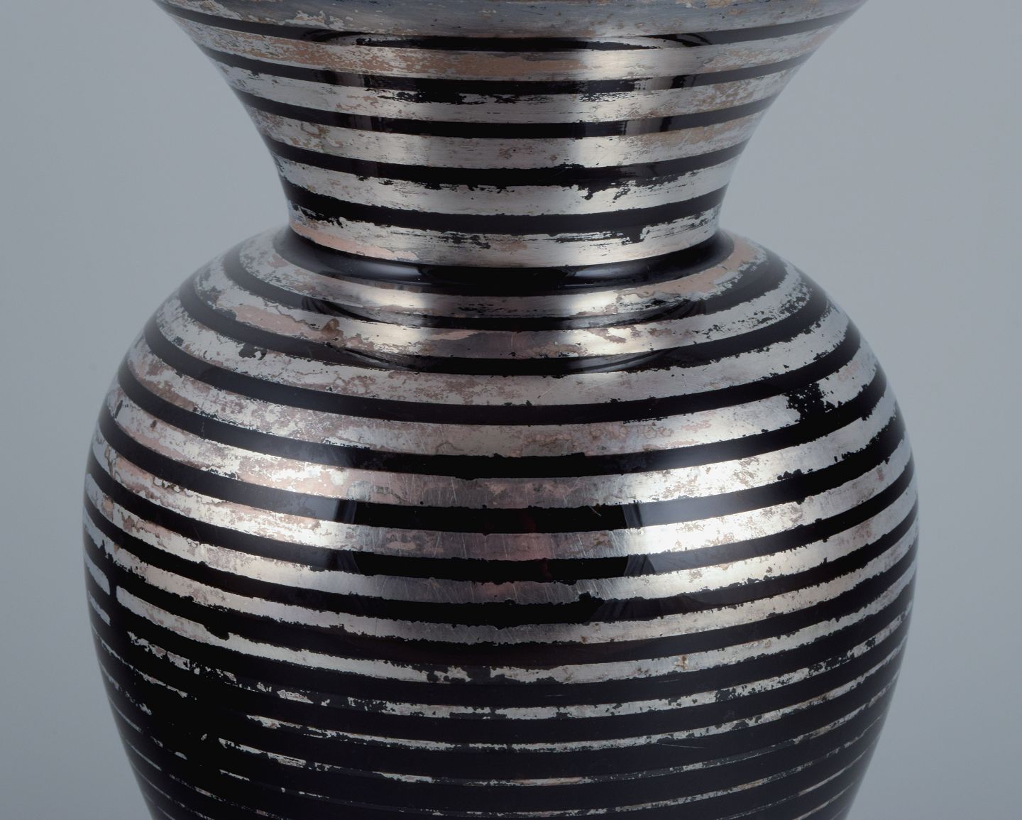 Art Deco glasvase, Tyskland. Med horisontale sølvindlæg.