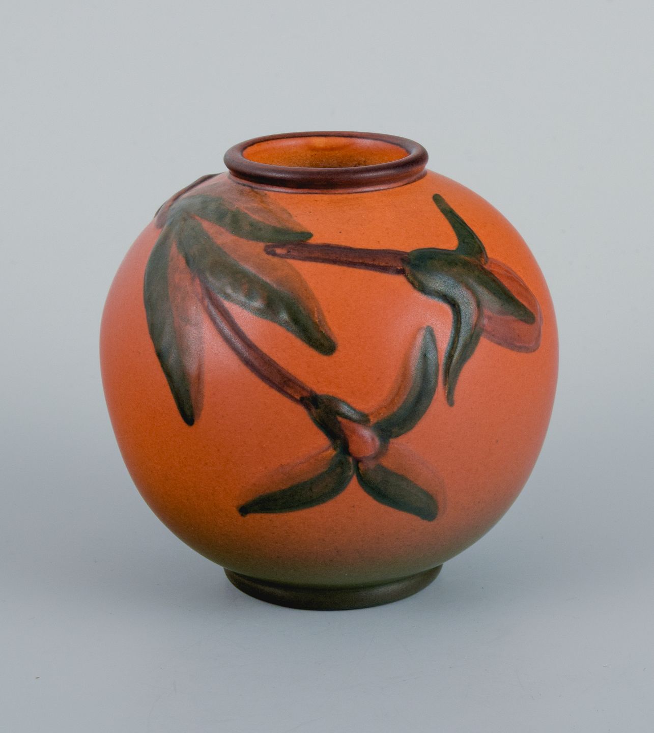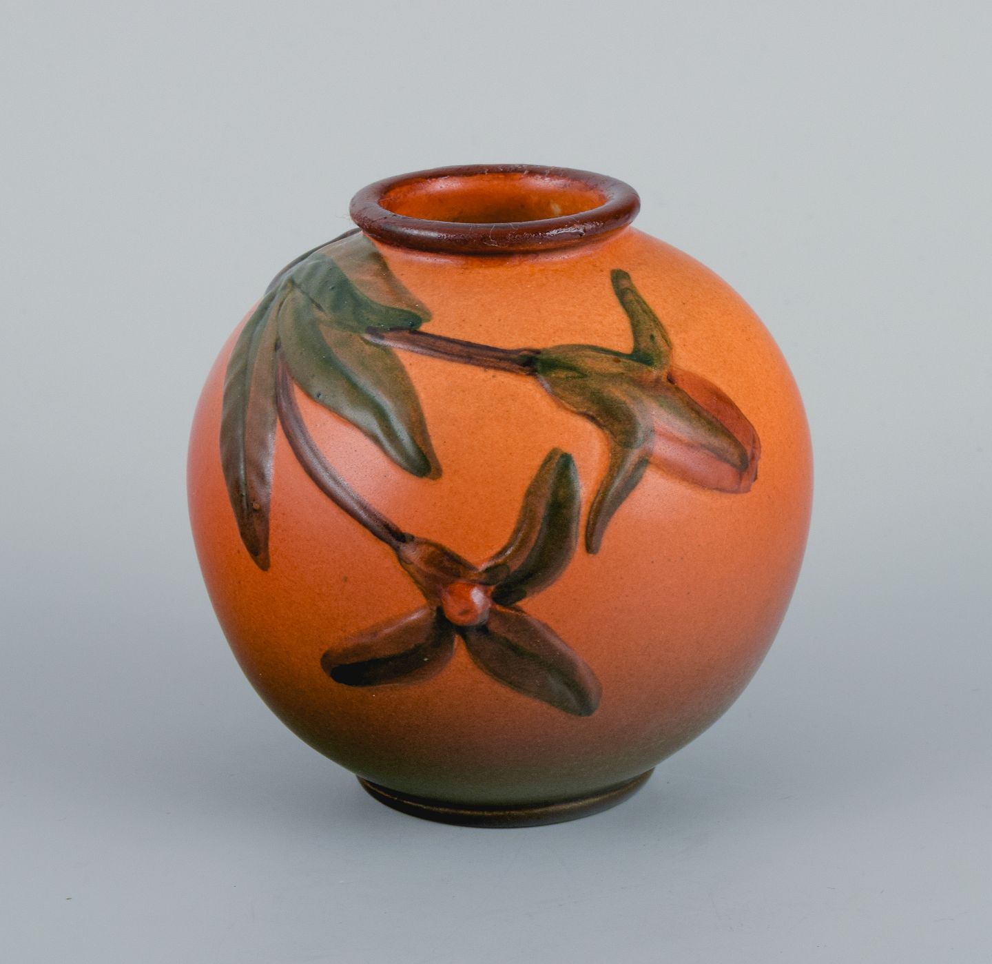 Ipsens Enke, Danmark. To små vaser med glasur i orangegrønne nuancer.