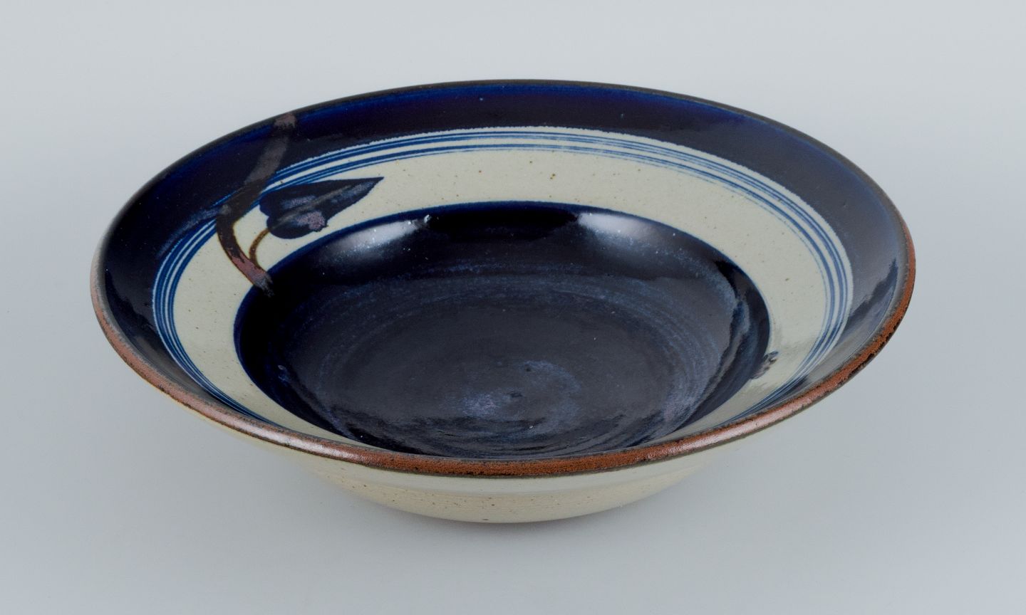 Carl Harry Stålhane for Designhuset, stort skål i lertøj med blå og lys glasur.