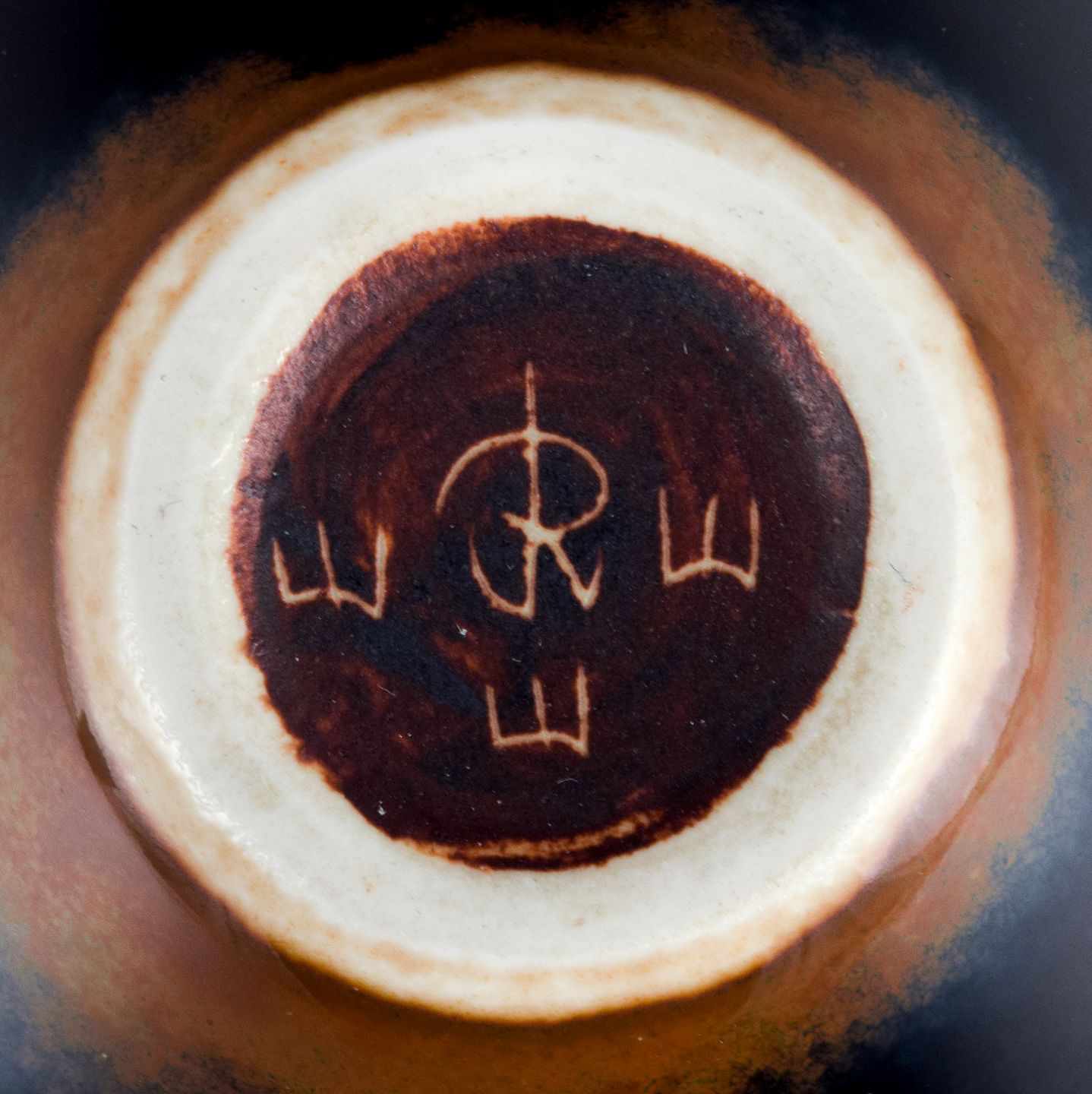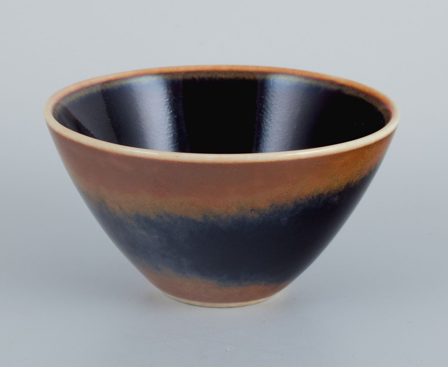 Rörstrand, lille keramikskål i blå og brune nuancer.
