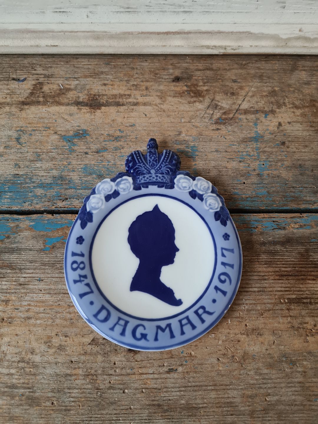 Royal Copenhagen Commemorative plaque from 1917 - Empress Dagmar 1847-1917 - frame with crown and roses.