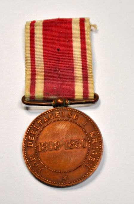 Medalje i kobber for deltagelsen i krigen 1848 - 1850, Danmark. Frederik VII. Med ordensbånd.