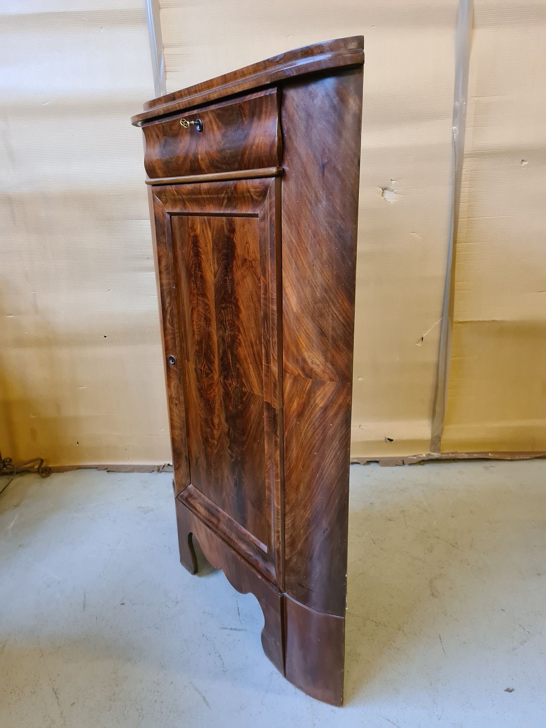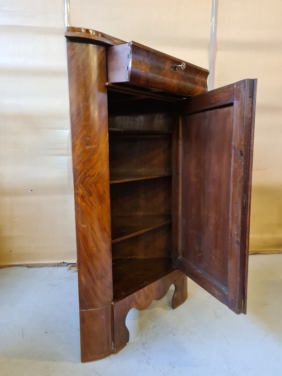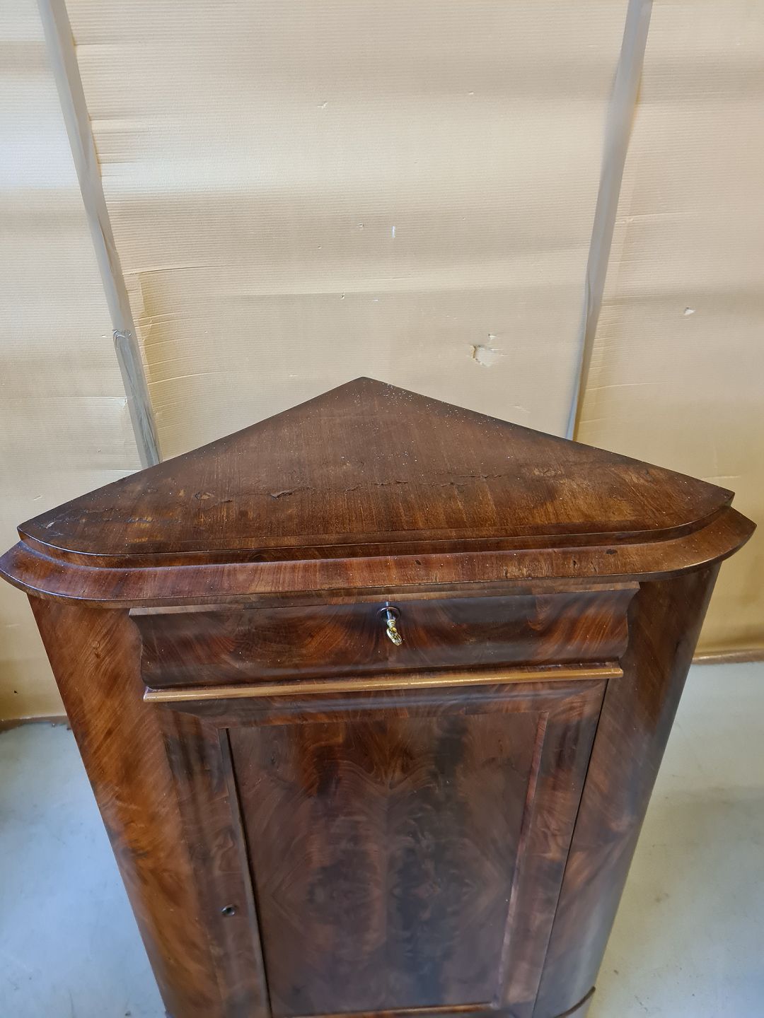 Hjørneskab i fineret mahogni, fra 1890erne.