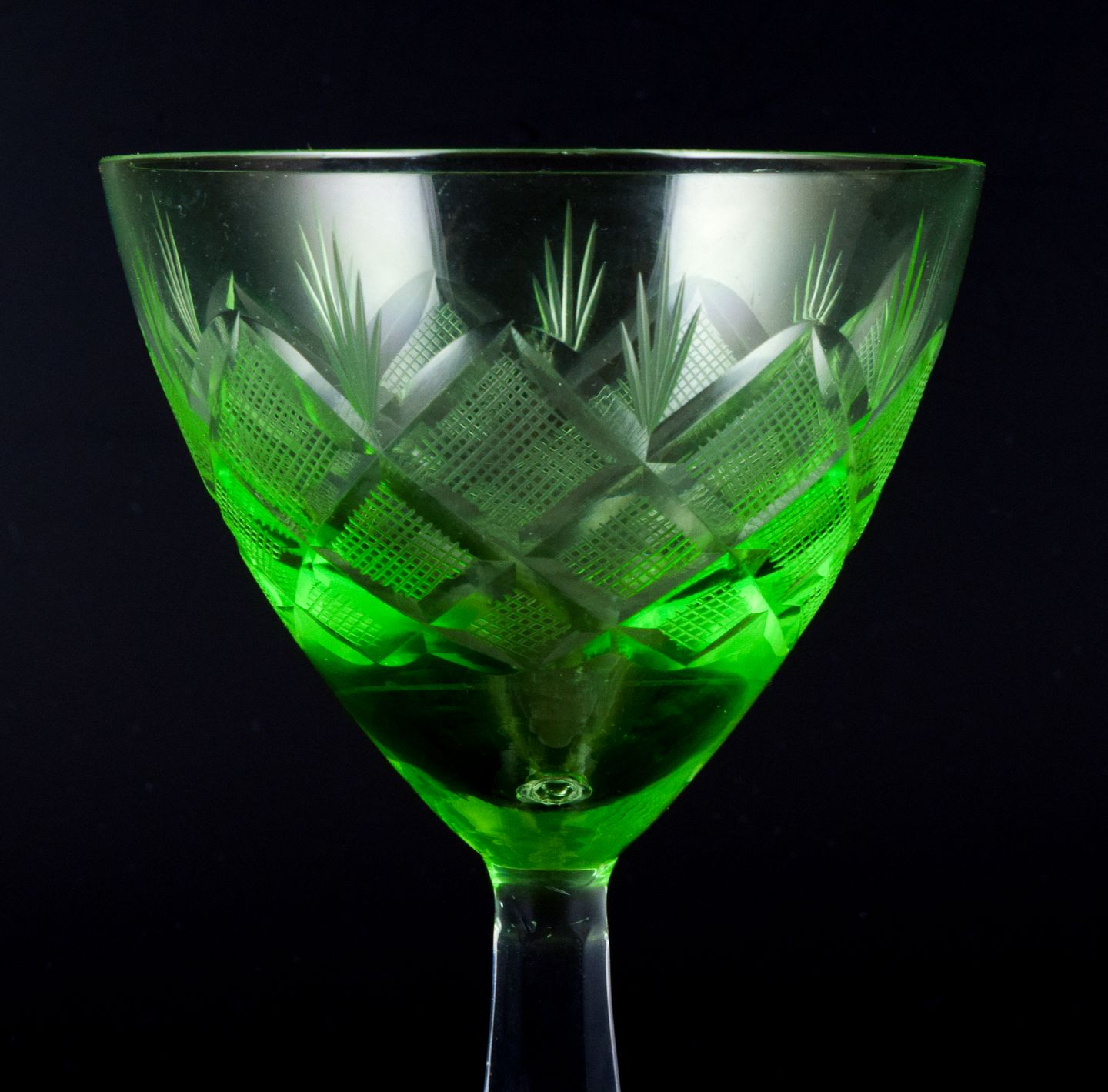 Wien Antik, Lyngby Glas, fire grønne hvidvinglas.