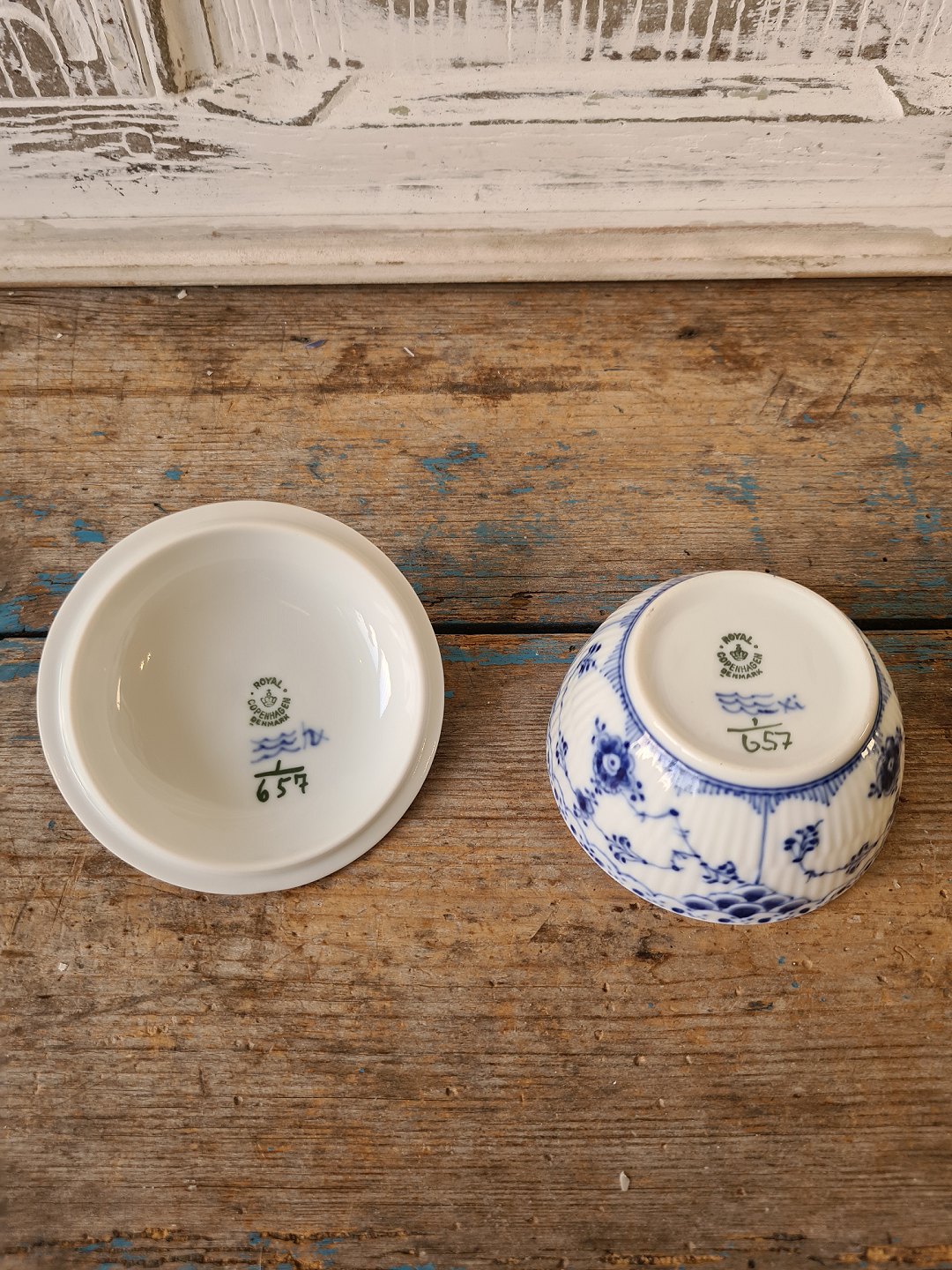 Royal Copenhagen Musselmalet halvblonde sukkerskål no. 657