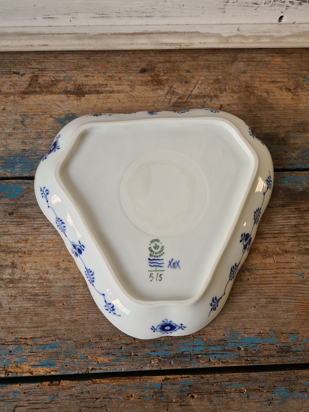Royal Copenhagen Musselmalet halvblonde trekantet fad no. 515