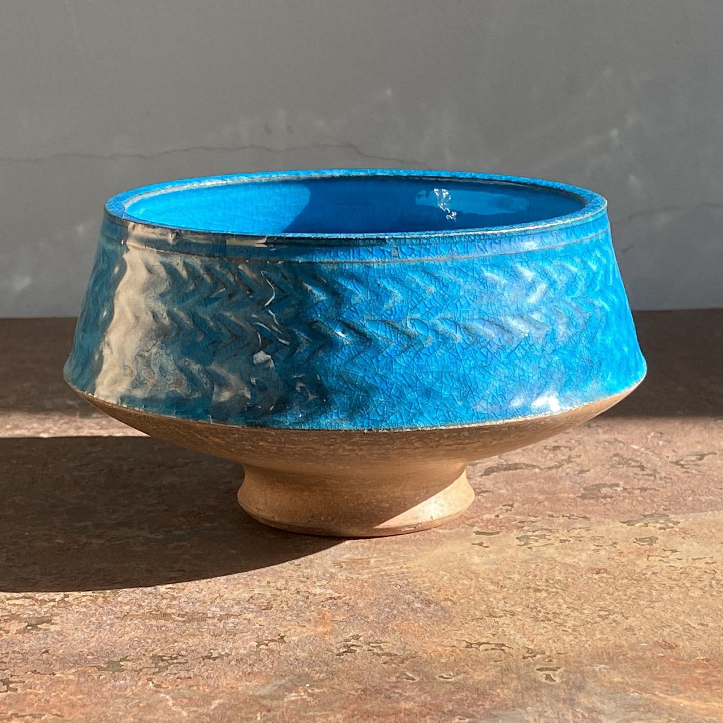 Nils Kähler for Kähler. Skål med delvis turkis glasur. Signeret med monogram HAK, Nils Denmark.