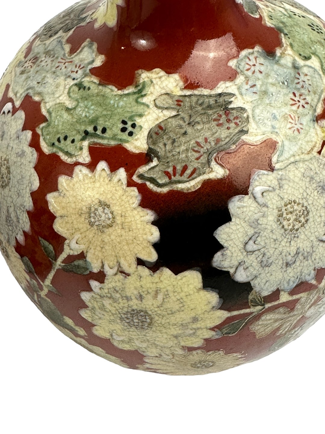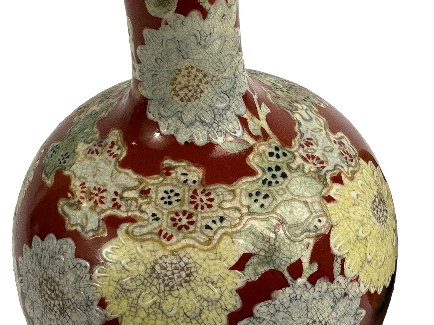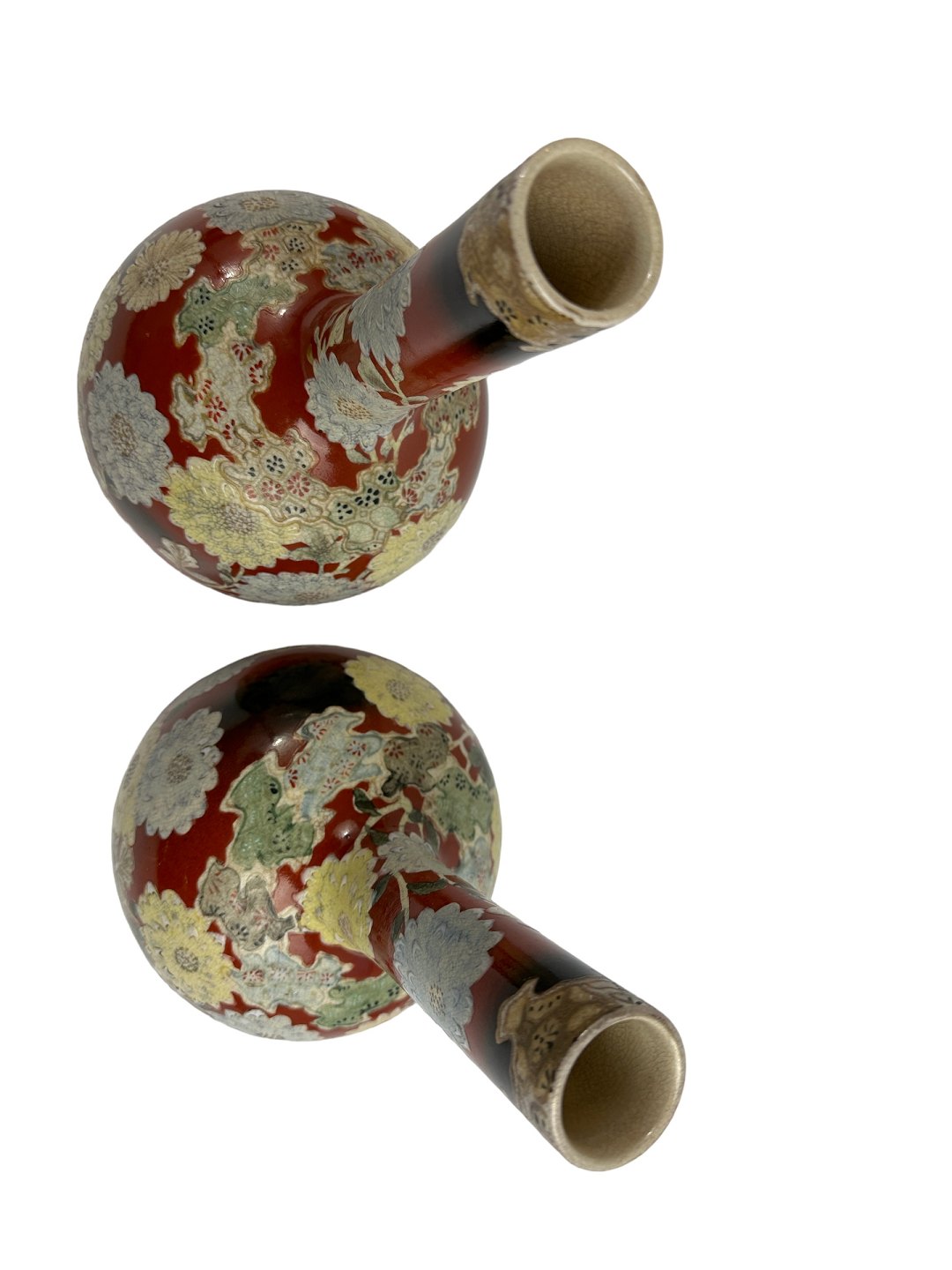Par flotte asiatiske vaser, antageligt japanske. 20. århundrede. Jernglasur med blomster.