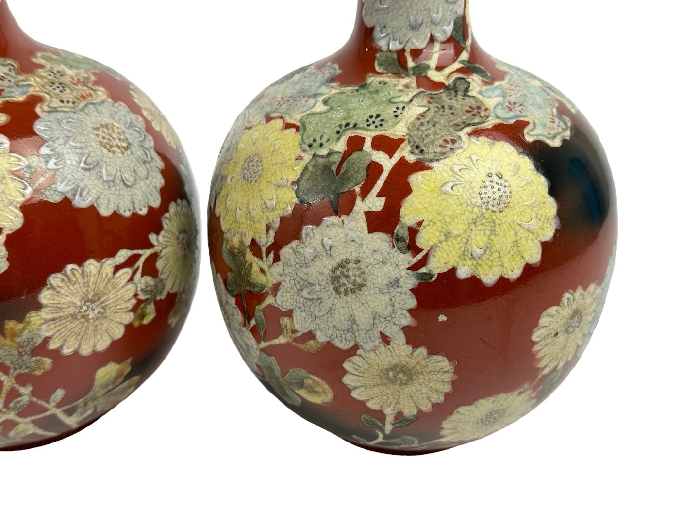 Par flotte asiatiske vaser, antageligt japanske. 20. århundrede. Jernglasur med blomster. Usignerede.
