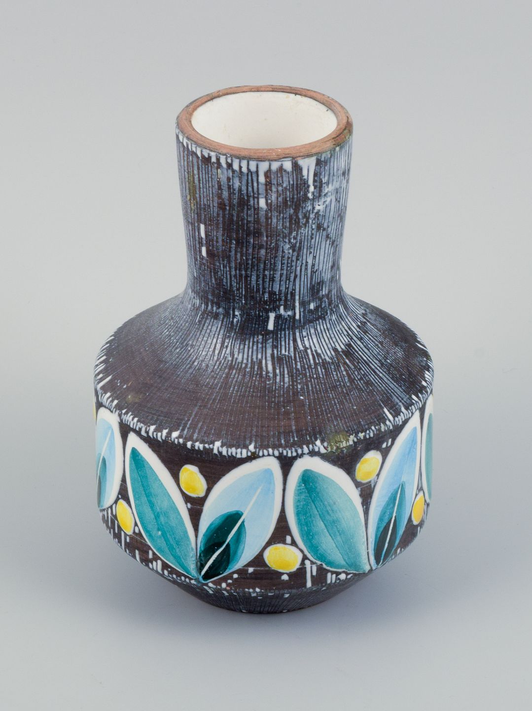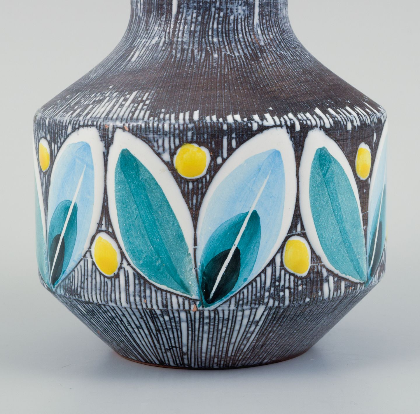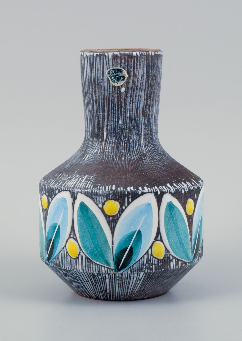 Bromma Keramik, Sverige. Håndlavet retro keramikvase dekoreret med blade.