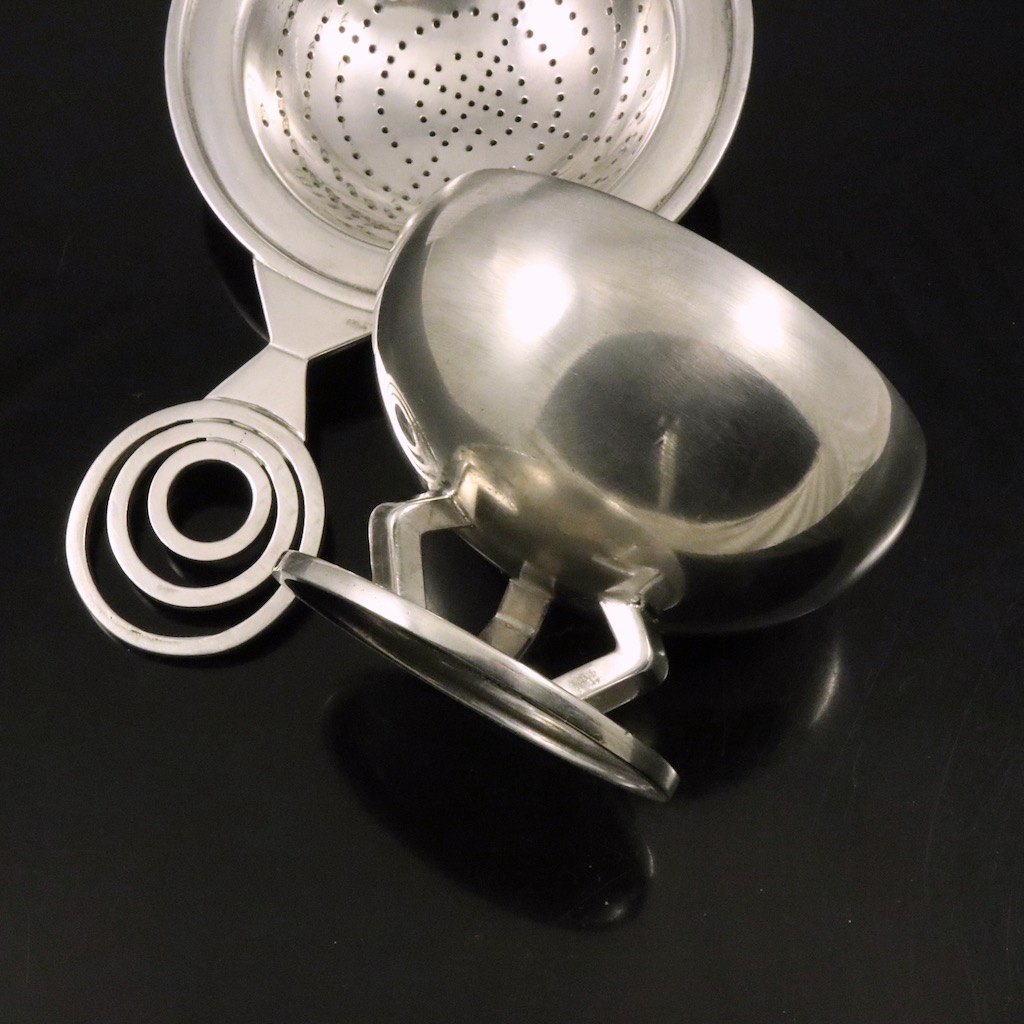 Svend Weihrauch (1899-1962). Art deco Sterling Silver Tea Strainer on Stand.