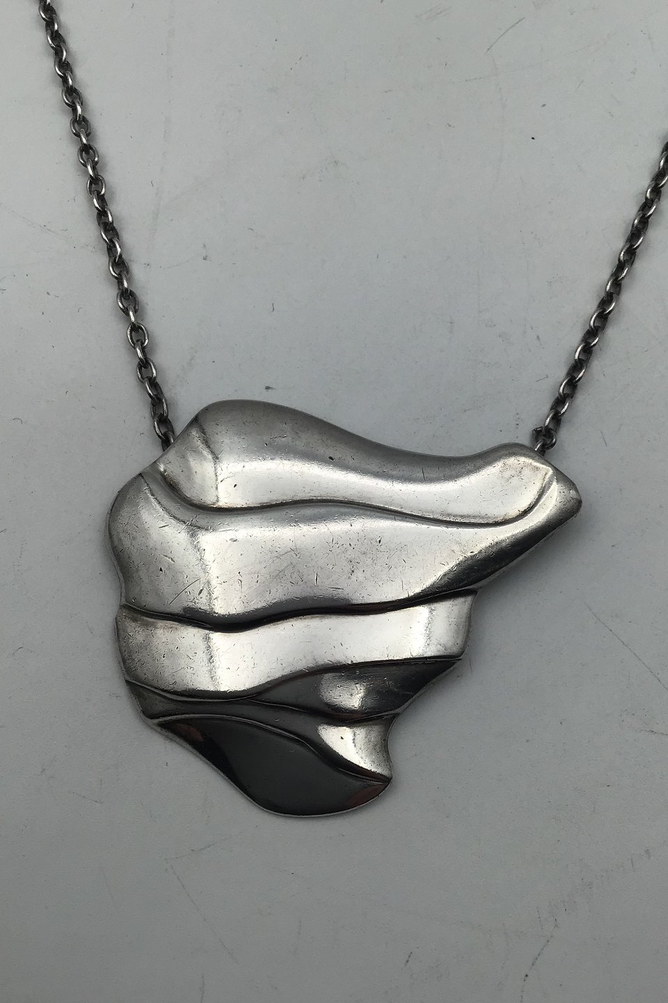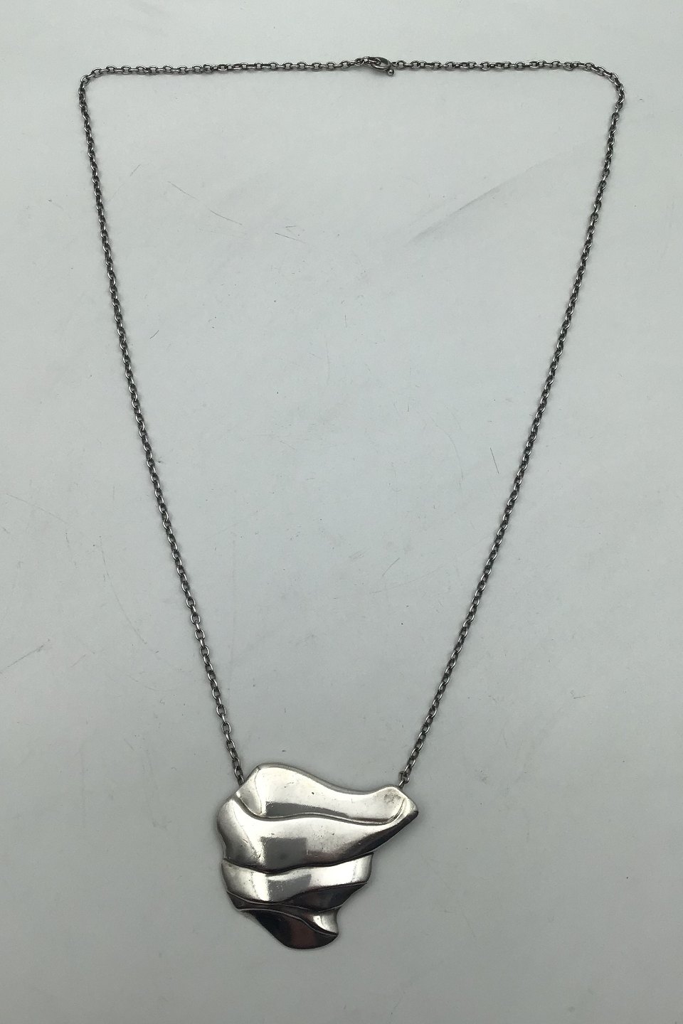 Georg Jensen Sterling Sølv Halskæde No. 395 Ole Kortzau Måler Kæde 75 cm (29.52 inch) Vedhæng 5 cm x 6 cm (1.96 inch x 2.36 inch) Samlet vægt 53 gr (1.87 oz)