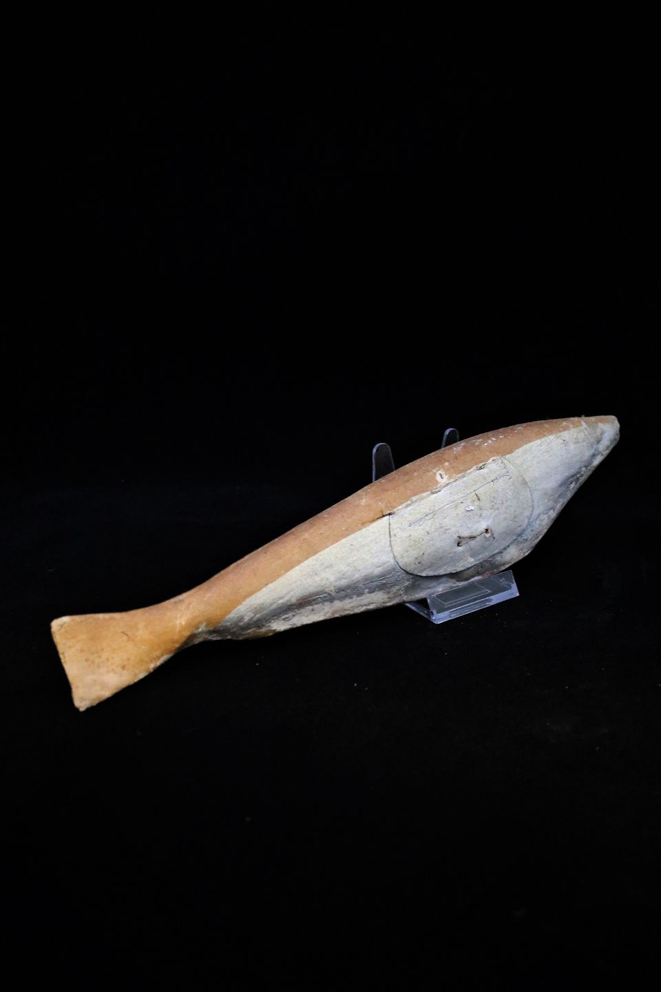 Dekorativ 1800 tals "fisk" i bemalet papmaché med en rigtig fin patina.