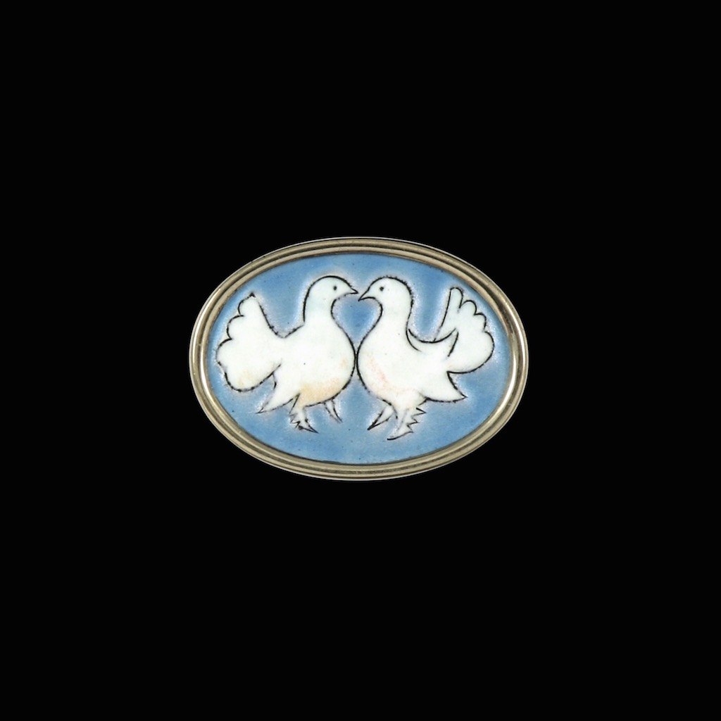 Falke Bang for Anton Michelsen. Broche i forgyldt sterling sølv med emalje.