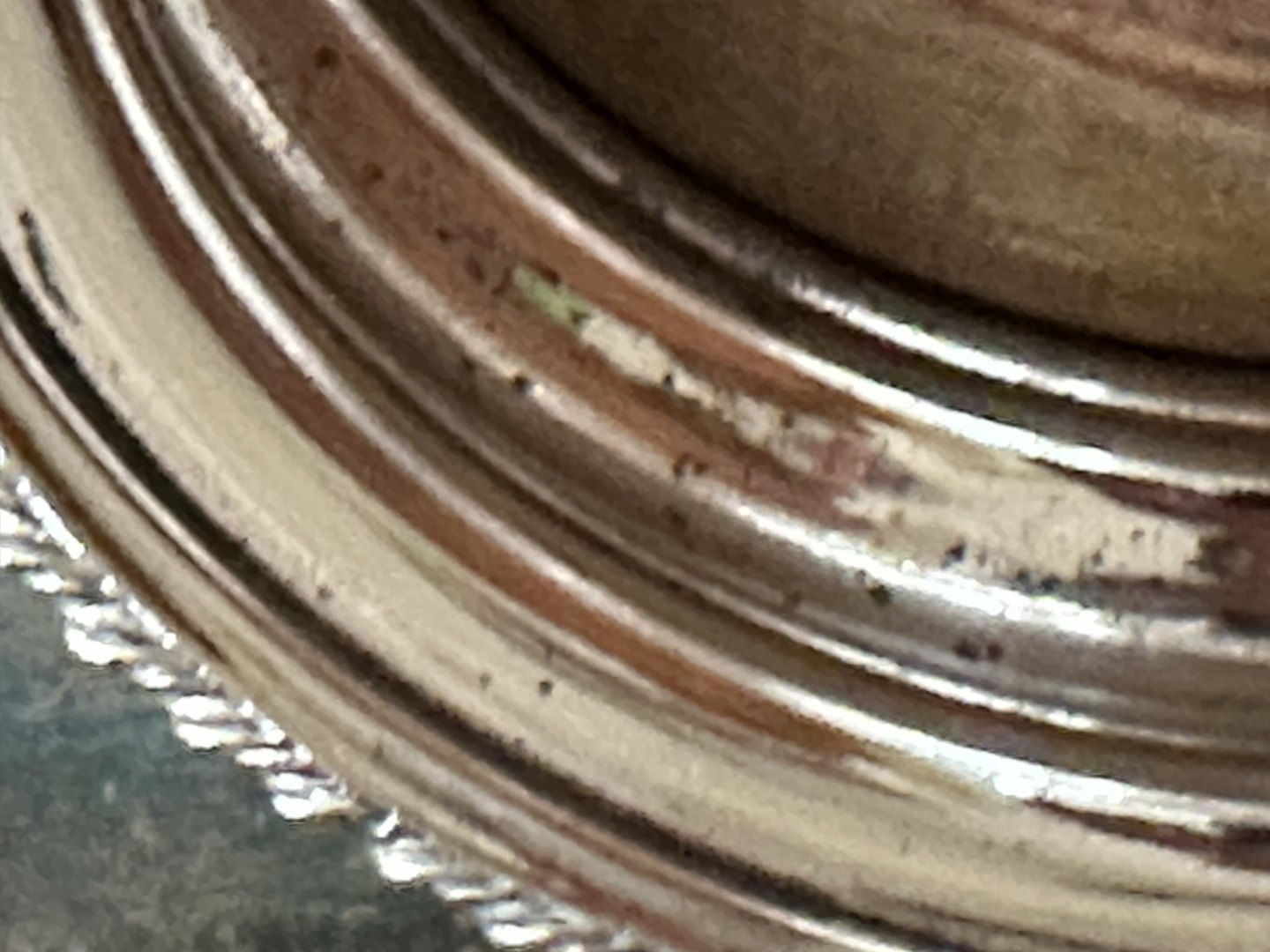 Vinbakkerne har patina, og områder hvor sølvpletten er slidt. Se fotos.