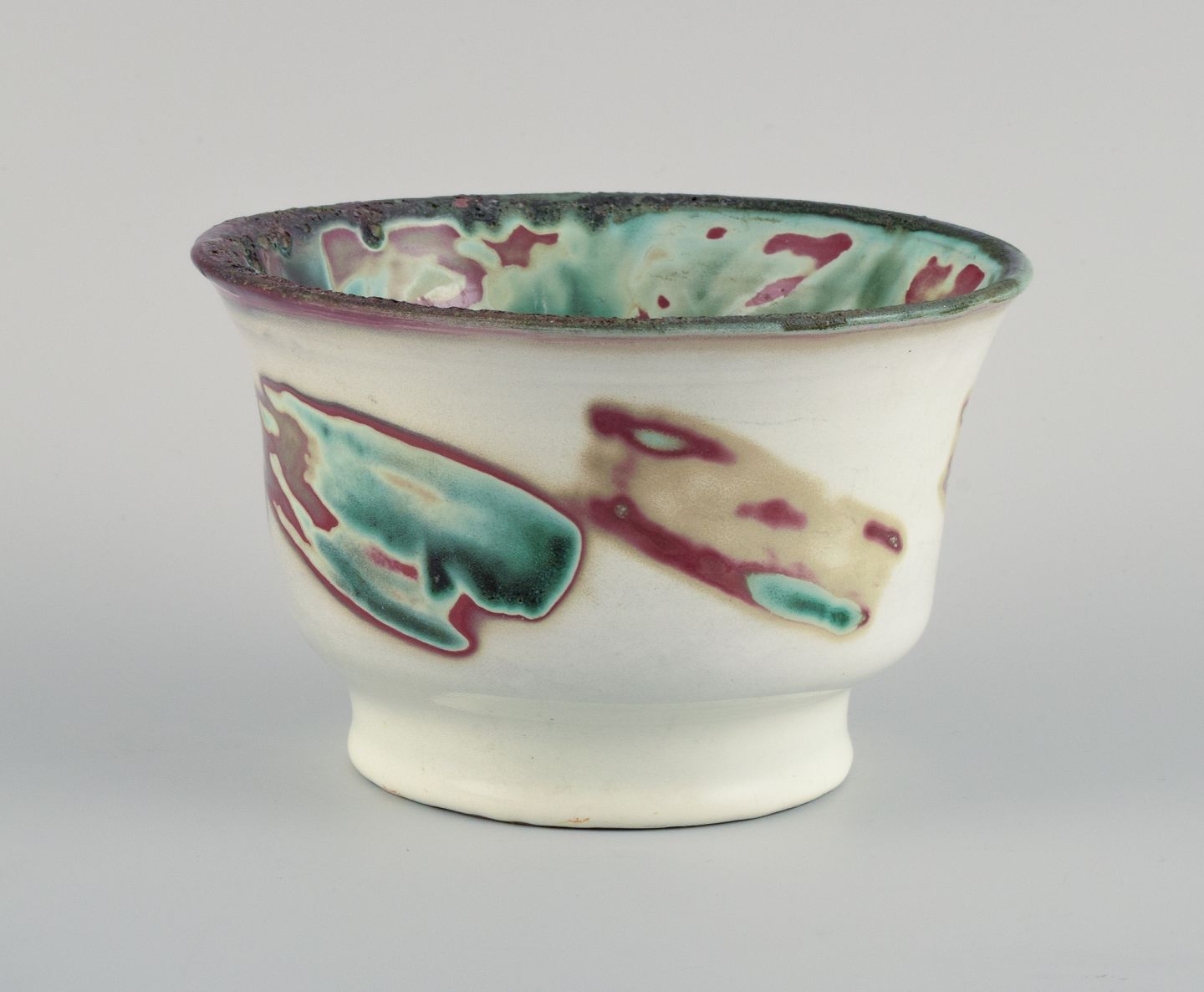 Europæisk studiokeramiker, unikakeramikskål i raku-brændt teknik.