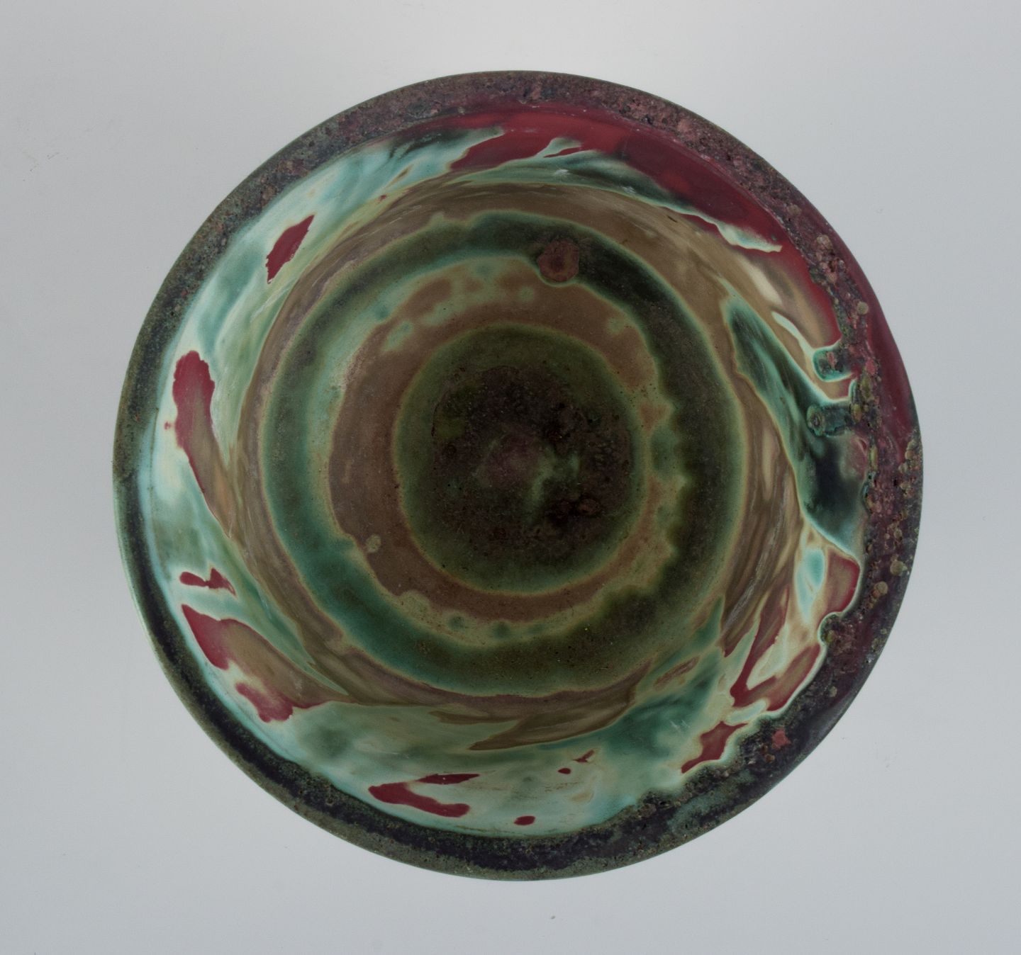 Europæisk studiokeramiker. Unikakeramikskål i raku-brændt teknik.