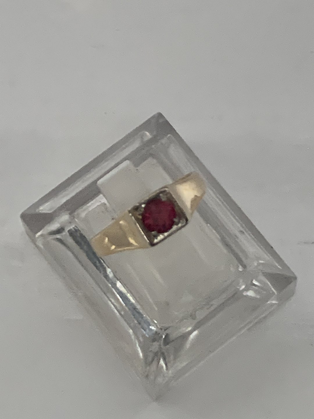 Guldring med rød sten i