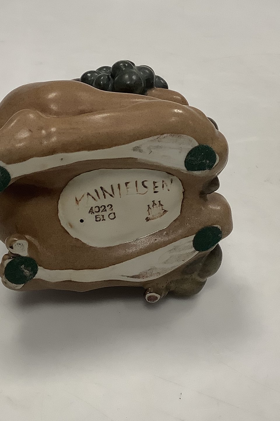 Bing & Grøndahl Figur af Kai Nielsen "Kvinde med druer og Faune" No 4022 fra Druehøstserien. Designet i ca. 1915. Måler 14 cm